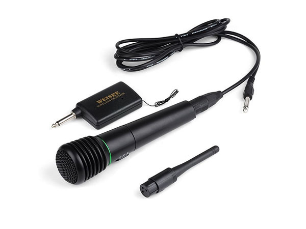 Poniższy zestaw składający się z wielu elementów to idealne urząddzenie pomocne przy prowadzeniu imprez, wesel, konferencji, akademii szkolnych, karaoke, dyskotek, w małych i średnich pubach, prywatek jak i użytku domowego. Prosta instalacja ogranicza się do podłączenia odbiornika do sprzętu stereo, wzmacniacza lub innego sprzętu współpracującego. Poniżej cechy produktu: