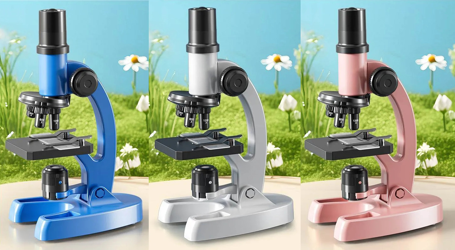 Mikroskop naukowy optyczny laboratoryjny 3 obiektywy zoom 300x-1200x zestaw