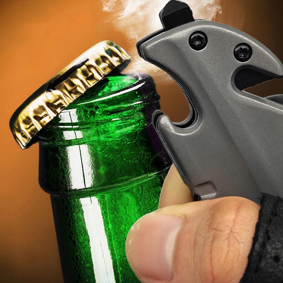 Posiada wbudowany otwieracz do butelek, zestaw czterech kluczy sześciokątnych (8, 9, 10 i 12 mm) oraz praktyczny nóż bezpieczeństwa do przecinania pasów.