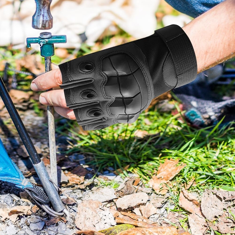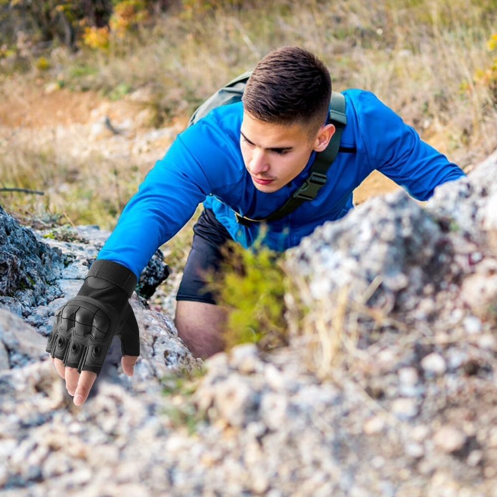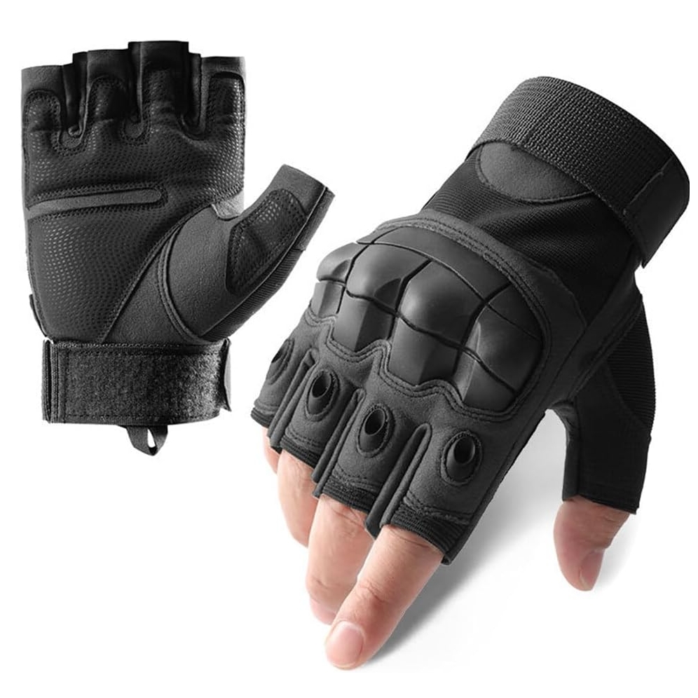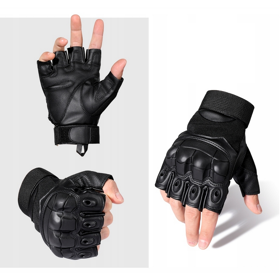 Rękawice taktyczne bez palców chronią dłonie przed otarciami, skaleczeniami i innymi urazami, jednocześnie pozwalając na pełną ruchomość palców.