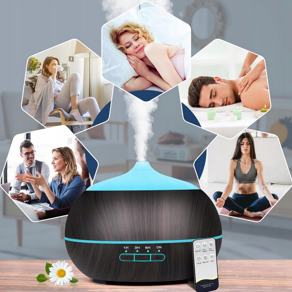 Nawilżacz powietrza dyfuzor zapachowy ultradźwiękowy jonizator lampka led ciemny + pilot