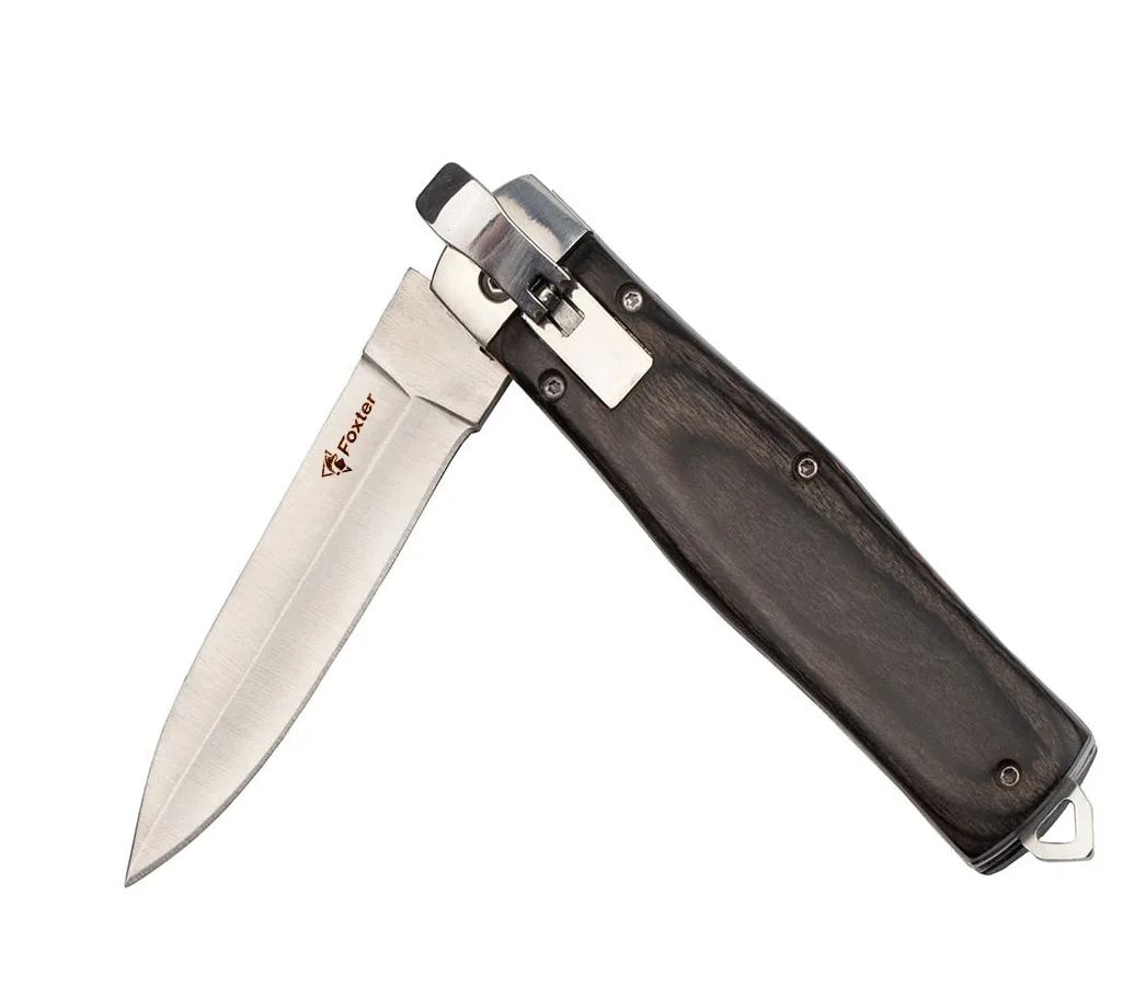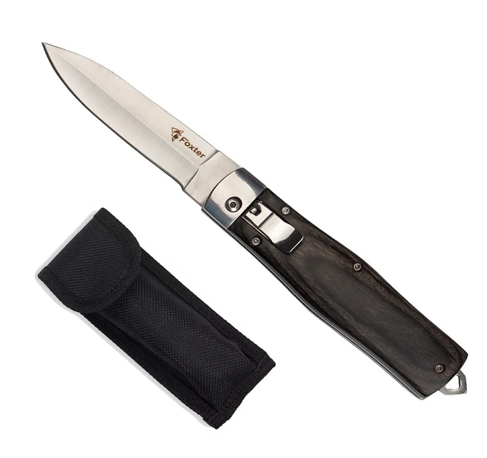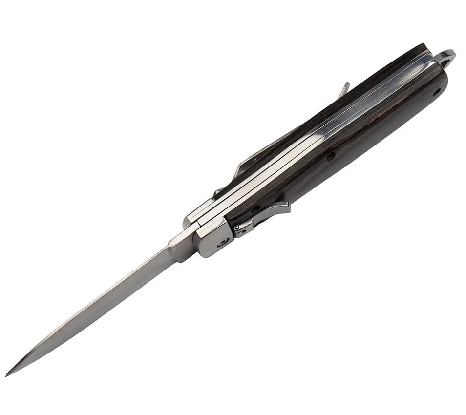 Poręczny składany nóż sprężynowy wykonany z wysokiej jakości stali.