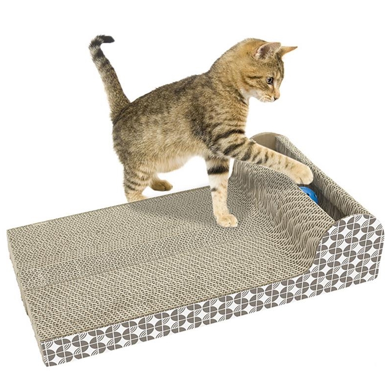 Drapak jest wyposażony we wbudowaną piłkę z grzechotką, aby zachęcić kota do polowania i zabawy.