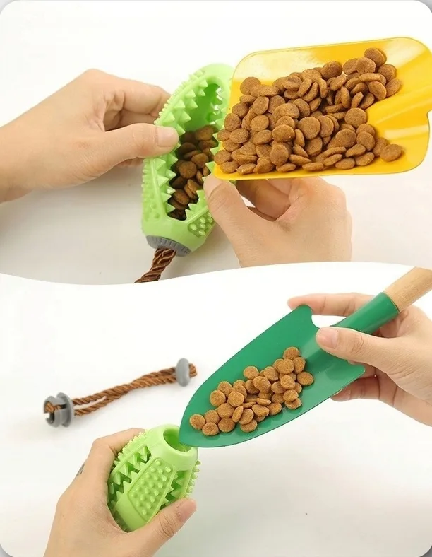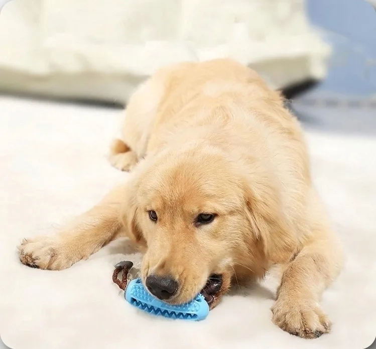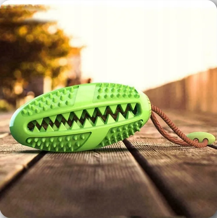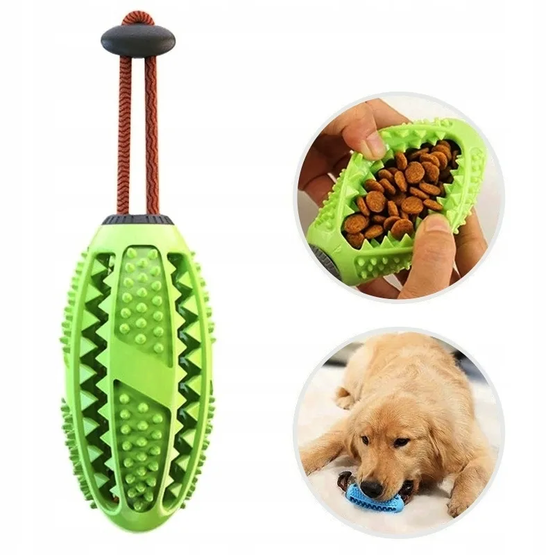 Zabawka umożliwia samodzielne czyszczenie zębów psa podczas zabawy.