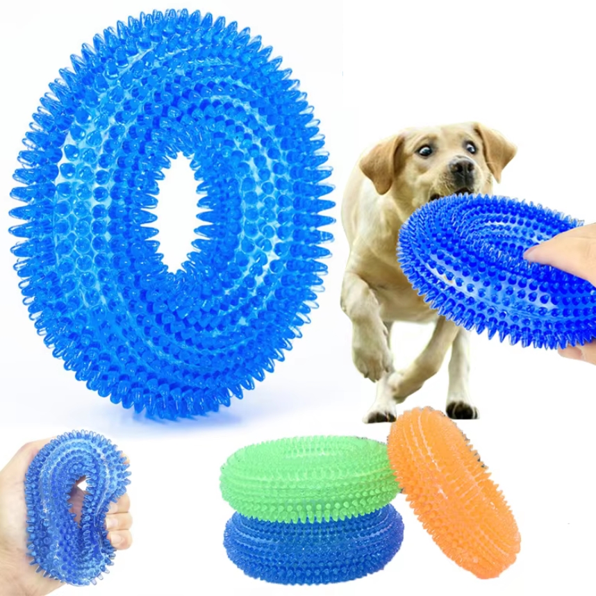 Gumowa zabawka dla psa piszcząca duży ring pierścień koło z wypustkami gryzak piszczałka 10cm