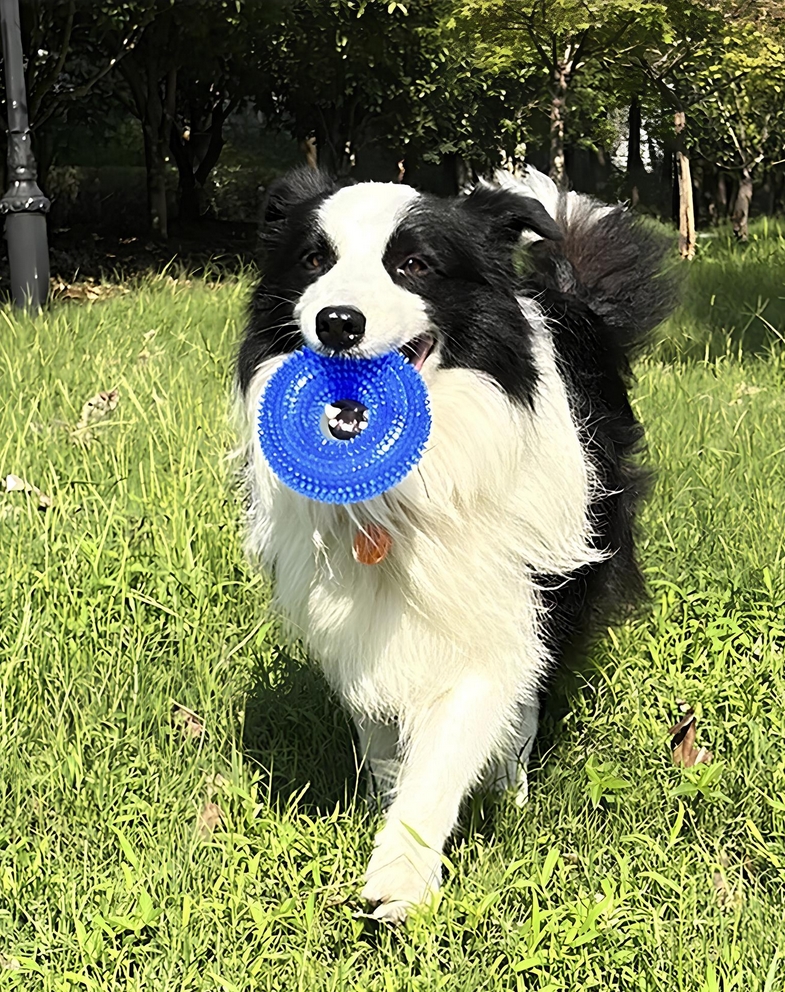 Z wyprofilowanymi wypustkami na powierzchni, zapewnia dodatkowy bodziec podczas zabawy, jednocześnie wspomagając zdrowie dziąseł i zębów.