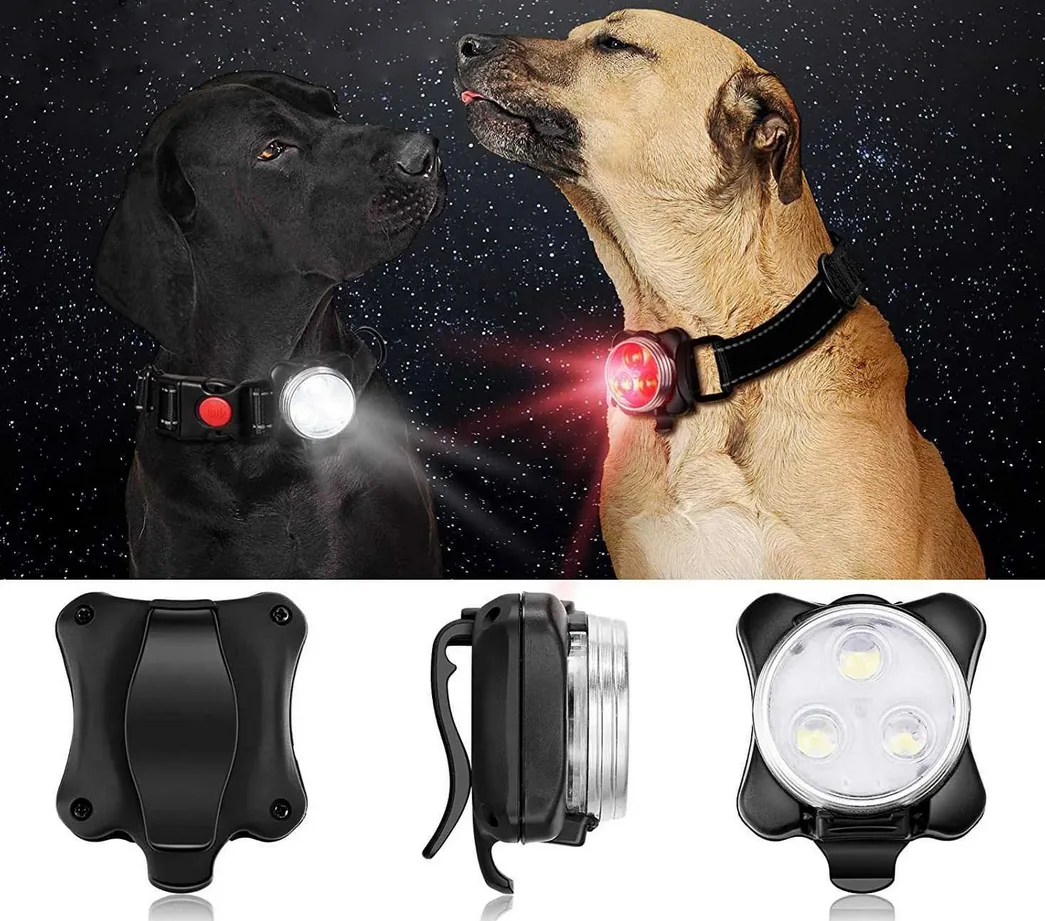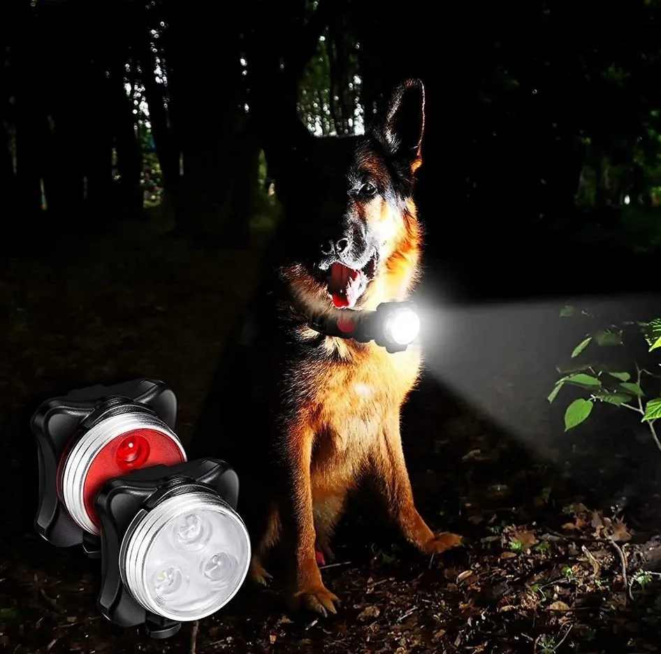 Mała świecące lampki led na obroże dla psa skutecznie poprawiają bezpieczeństwo psa i opiekuna podczas spacerów po zmroku.