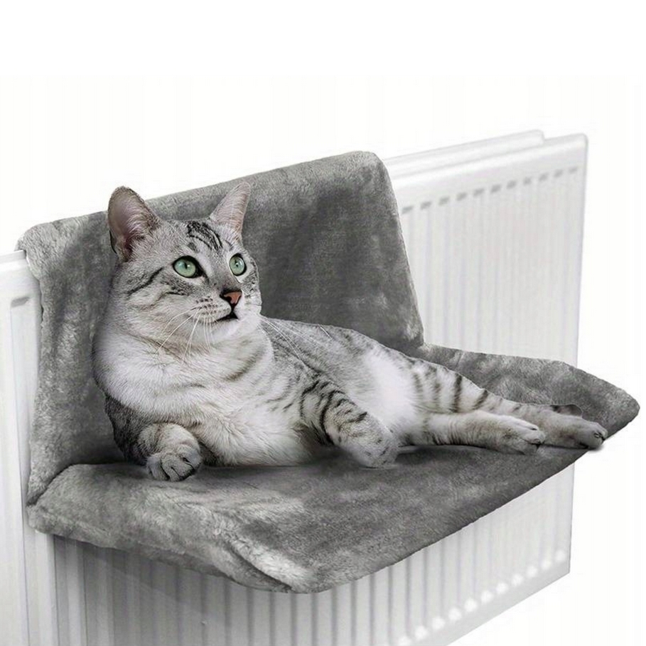 NUXIE® Legowisko hamak pluszowy wiszący dla kota na grzejnik kaloryfer szary 45 cm