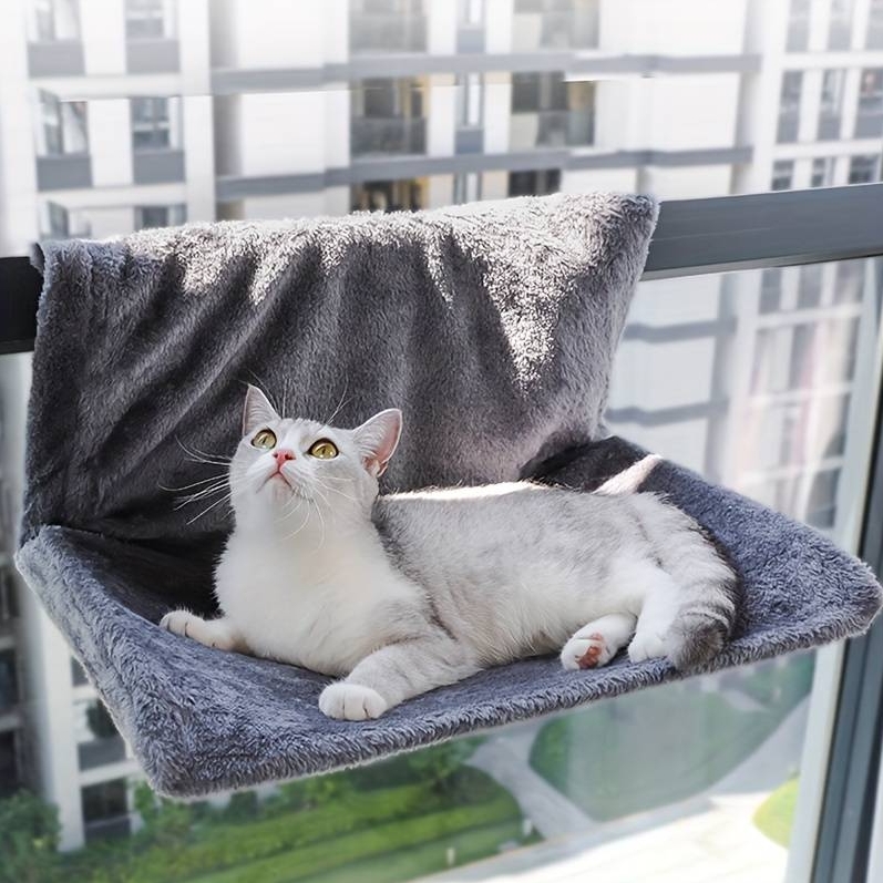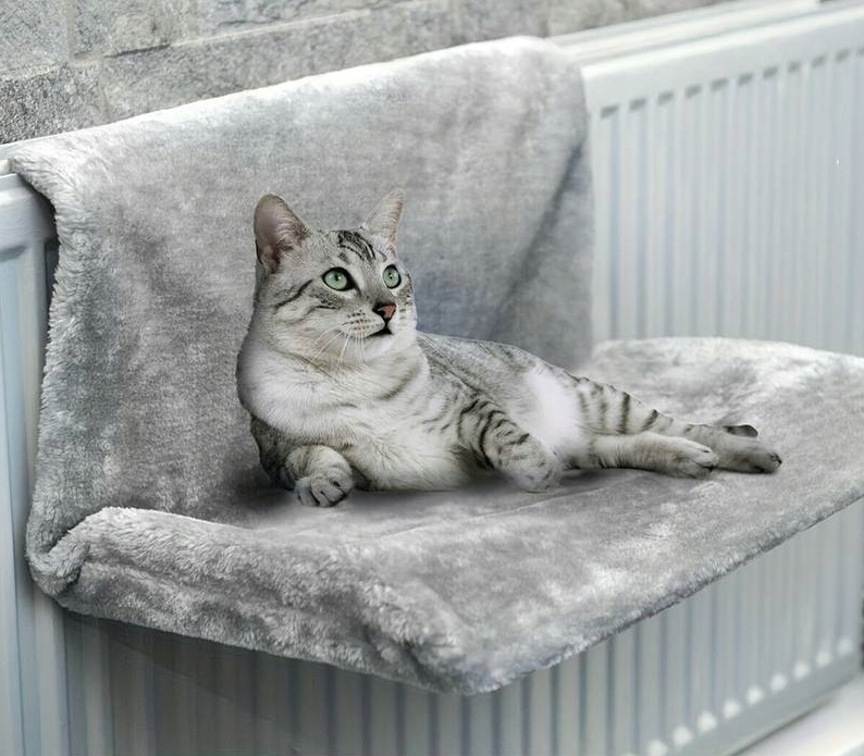 Hamak można umiejscowić na balustradzie czy też na grzejniku, w zależności od upodobań kota czy aktualnej pory roku.