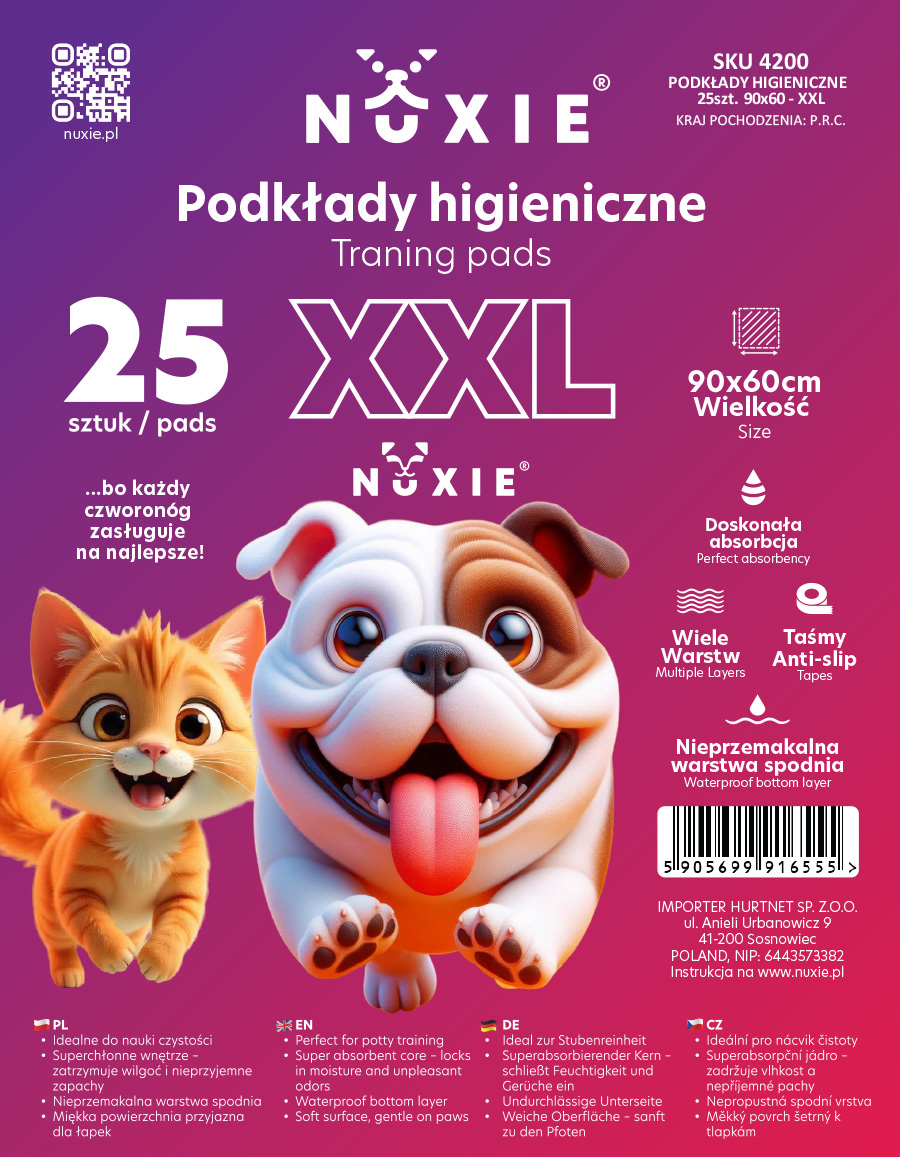 NUXIE® Mata dla psa podkłady higieniczne różowe xxl 25szt 60x90cm
