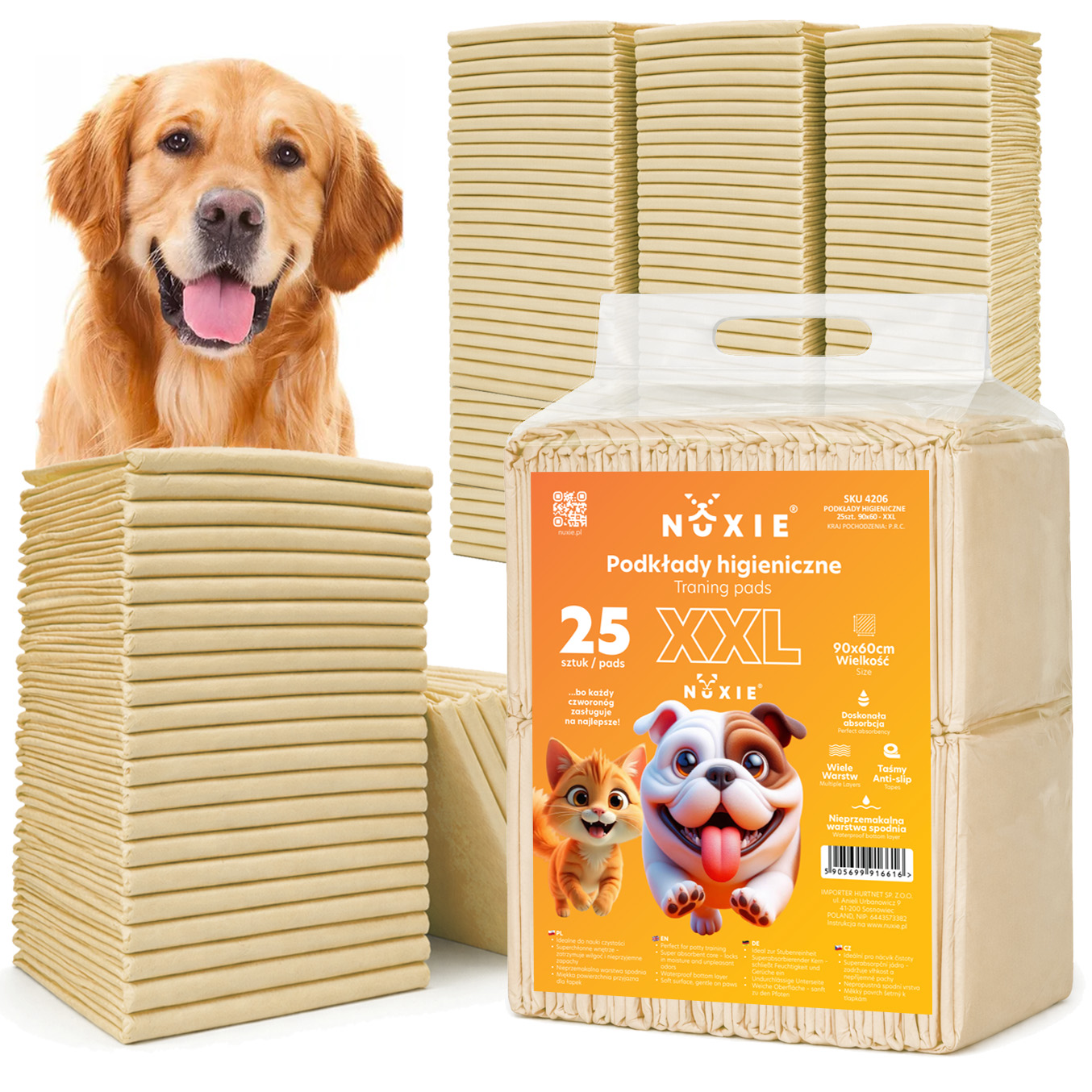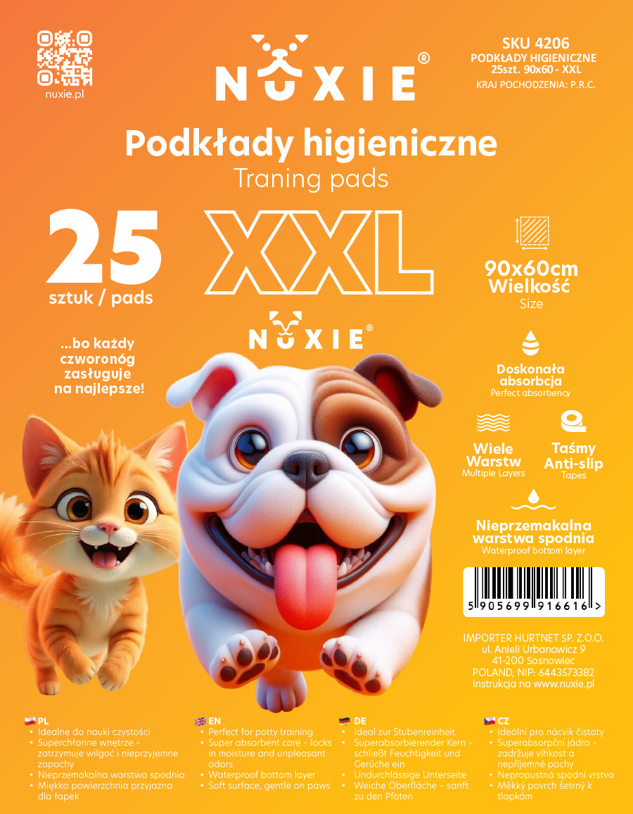 NUXIE® Mata dla psa podkłady higieniczne żółte xxl 25szt 60x90cm