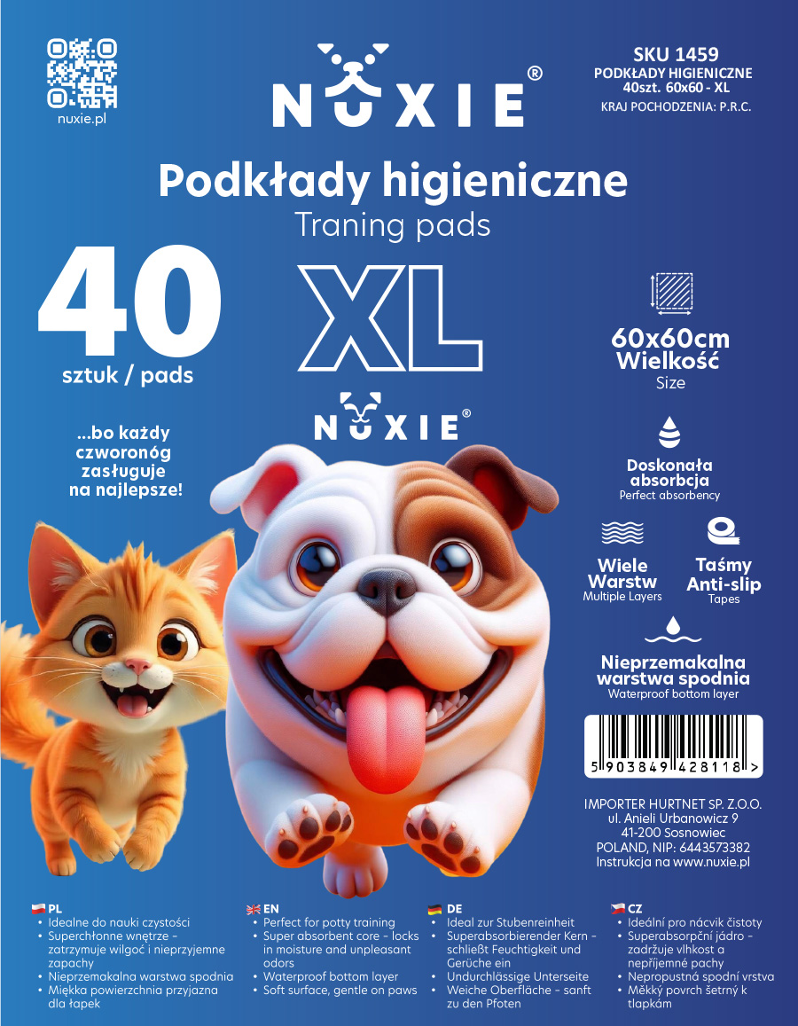 NUXIE® Mata dla psa psów podkłady higieniczne niebieskie xl 40szt 60x60cm