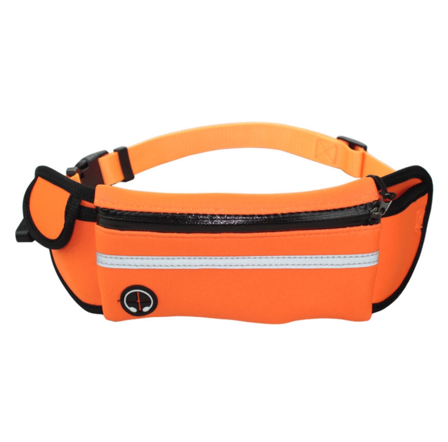 Pas posiada dużą kieszonkę na środku zamykaną na zamek błyskawiczny, oraz mniejszą boczną kieszeń zamykaną na rzep.