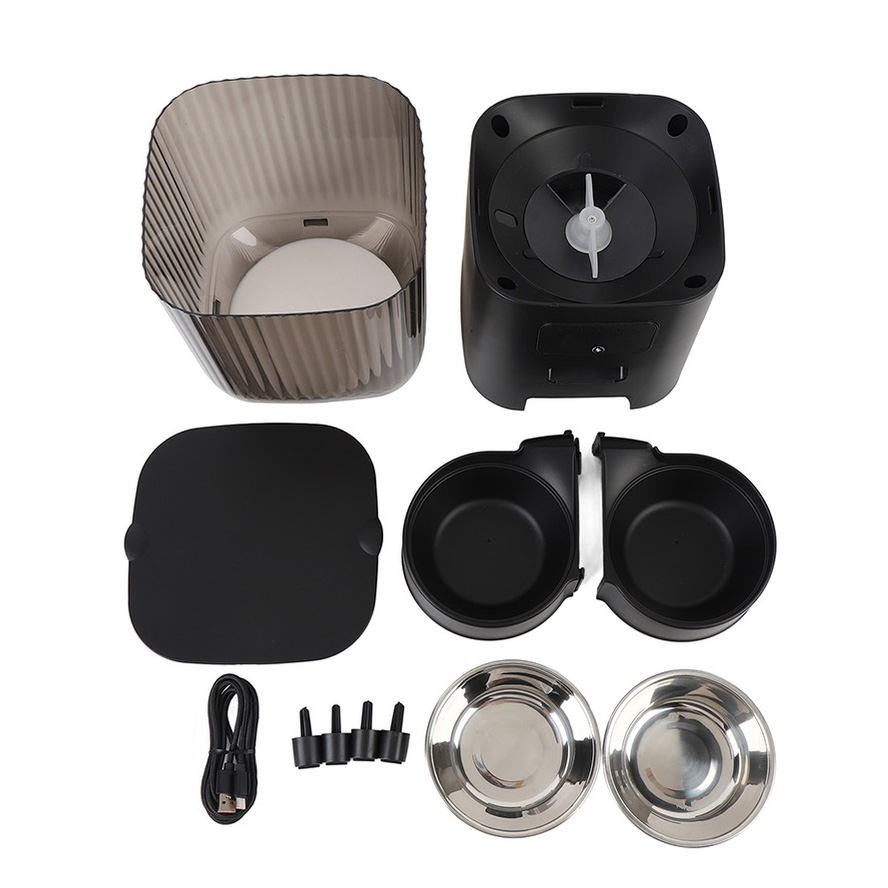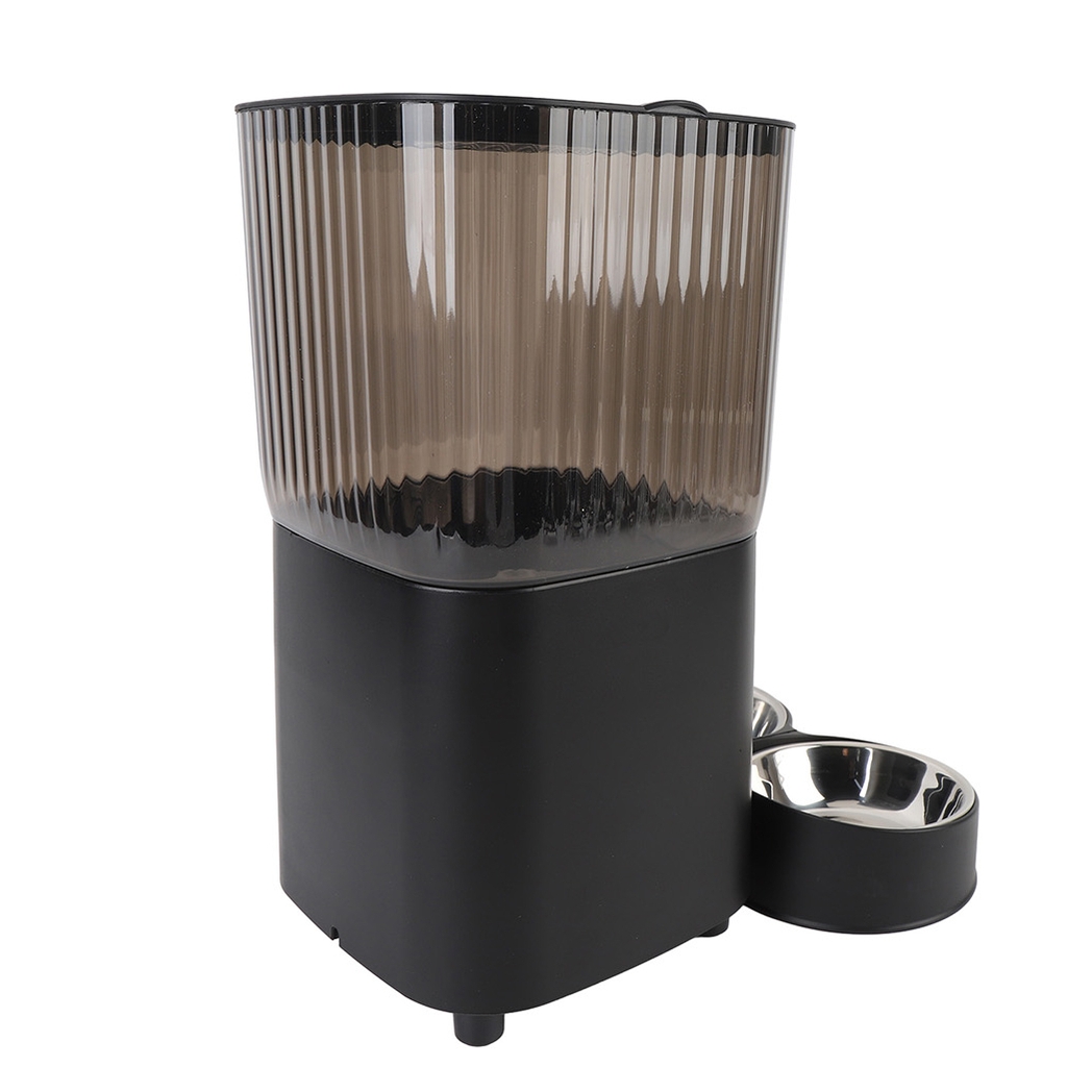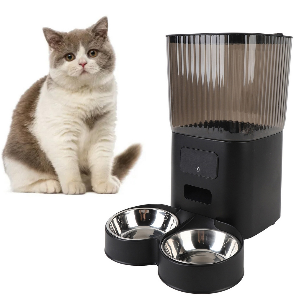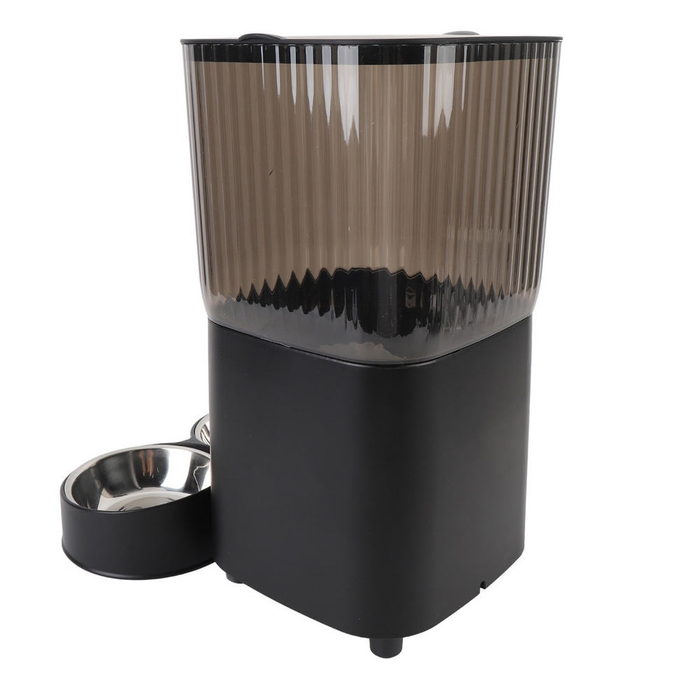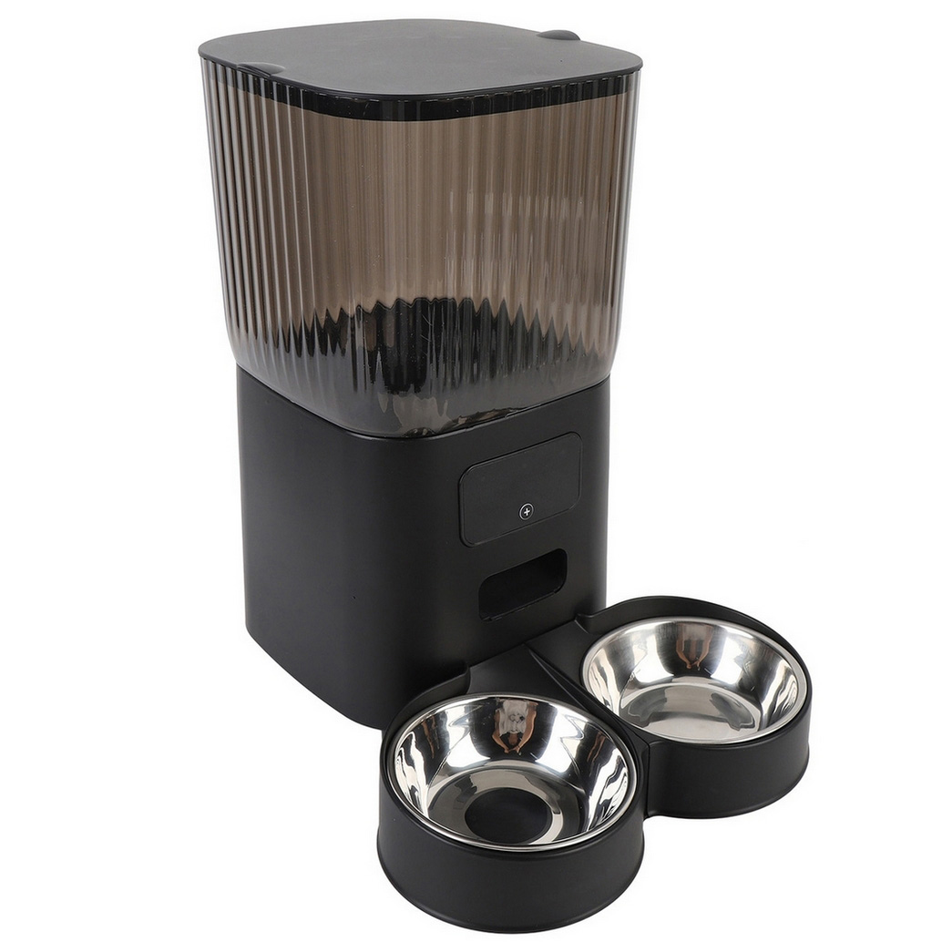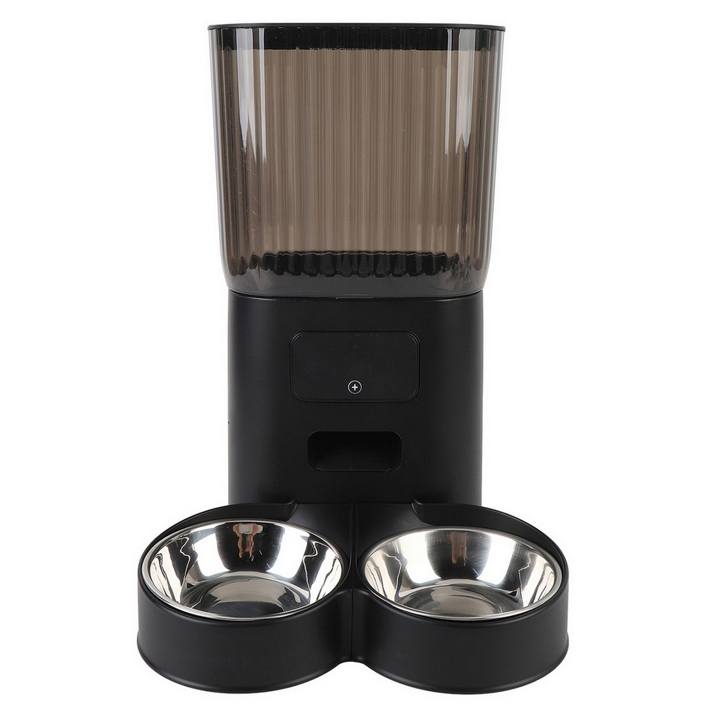 Podajnik wyposażony jest w pojemnik na jedzenie wykonany z wysokiej jakości stali nierdzewnej, co gwarantuje bezpieczeństwo i higienę dla zwierzaka.