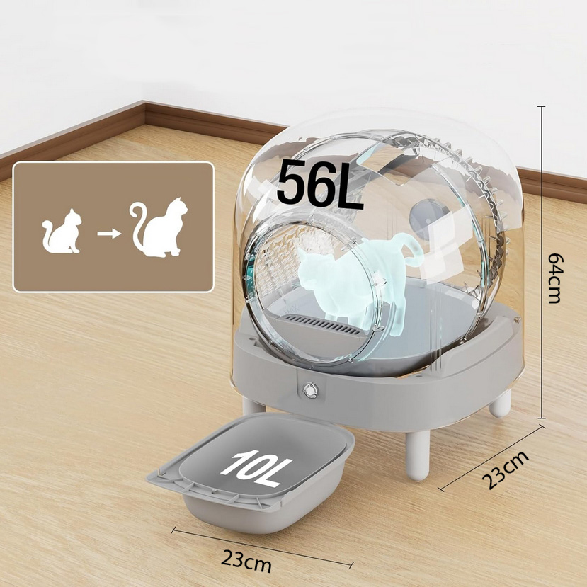 Przestronny pojemnik o pojemności 56 litrów zapewnia kotu komfortowe środowisko.