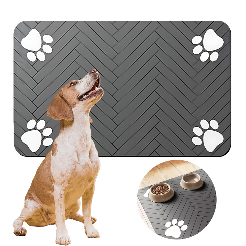 Duży rozmiar maty sprawia, że bez problemu pomieści dwie miski dla psa lub kota.