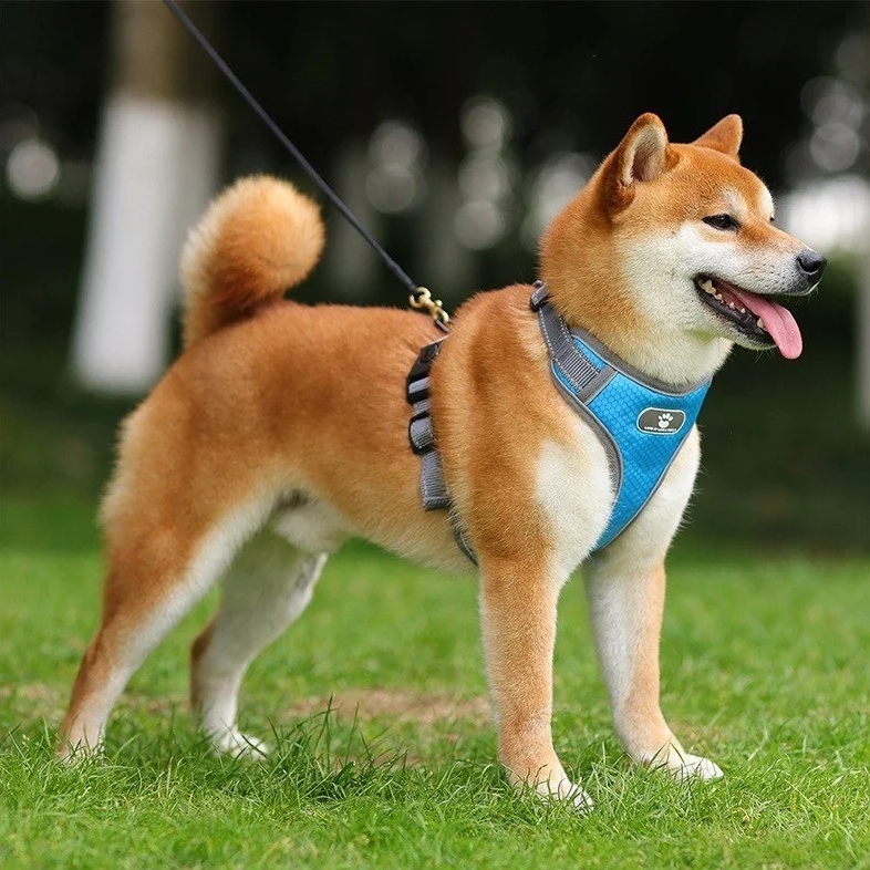 Szelki posiadają dodatkowe elementy odblaskowe, dzięki czemu pies będzie dobrze widoczny nawet w ciemności.