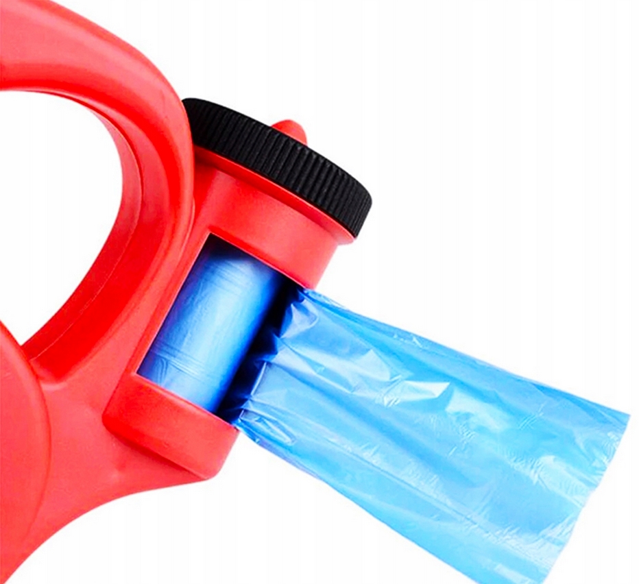 W dolnej części urządzenia znajdziemy zasobnik na woreczki na psie kupy – zawiera w zestawie rolkę z 15 workami.
