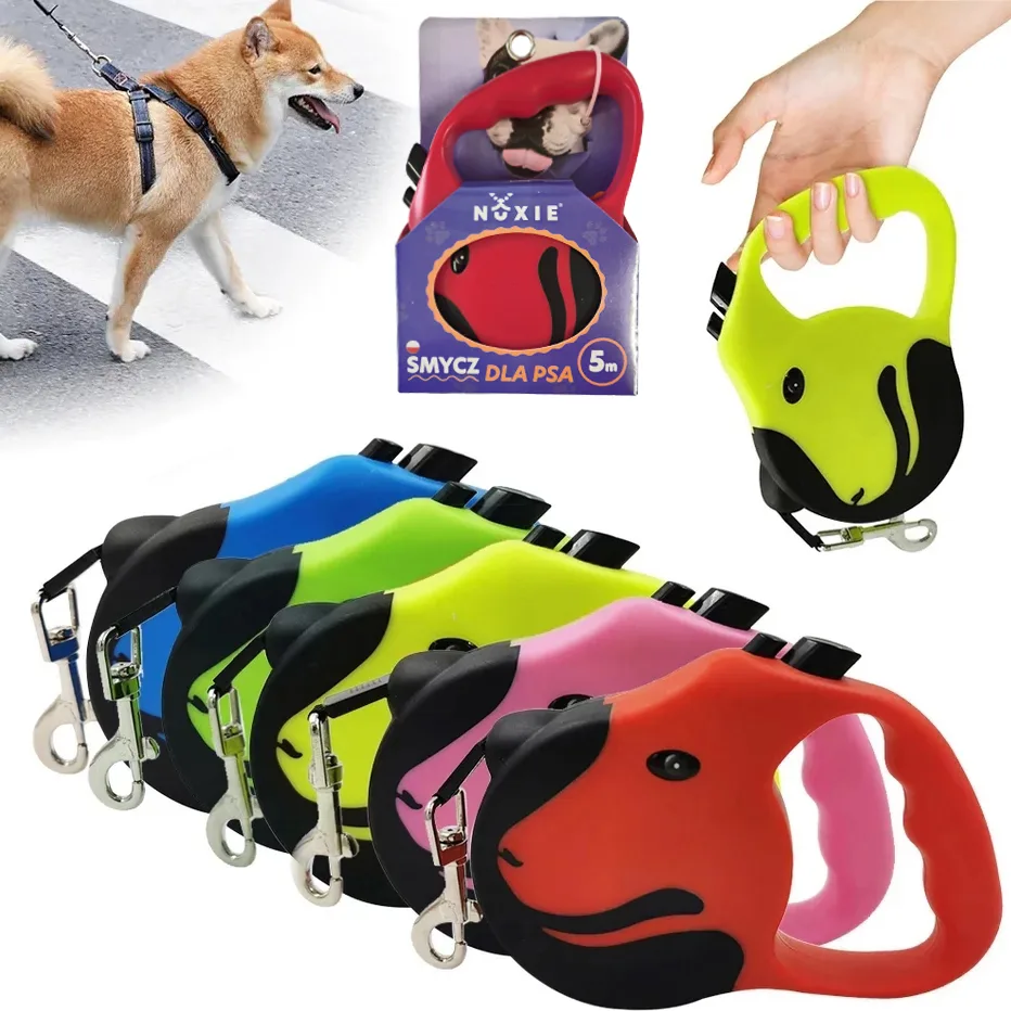 Smycz taśmowa automatyczna z blokadą zwijania i rozwijania przeznaczona dla małych i średnich ras psów i kotów.