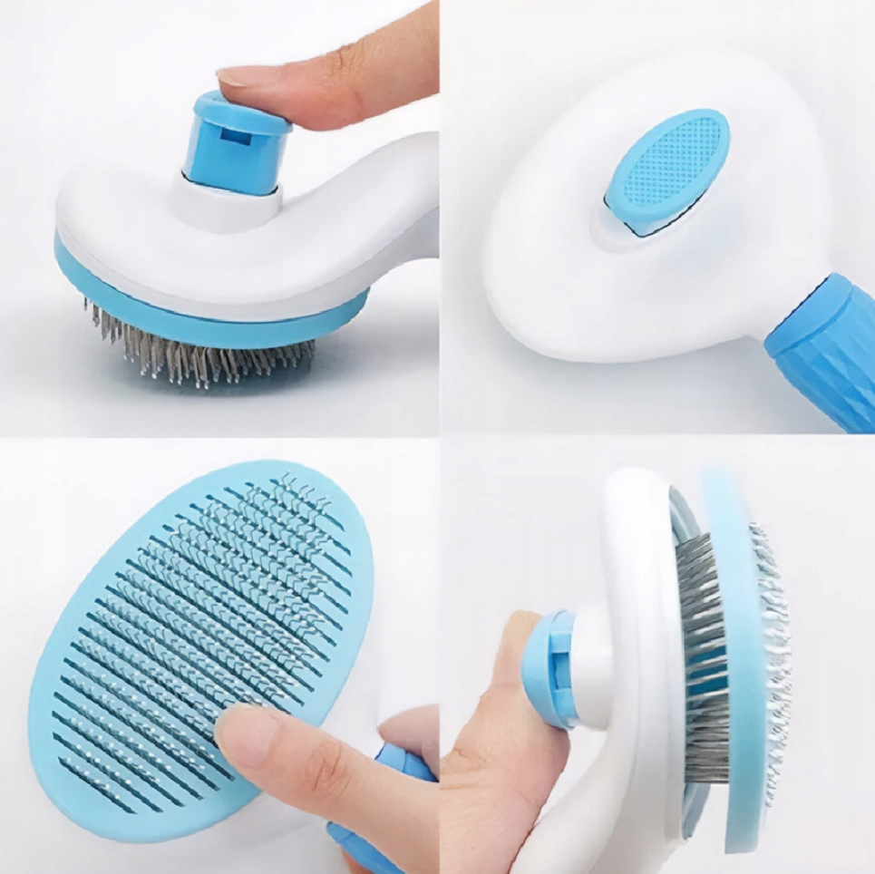 Szczotka posiada oryginalny system czyszczenia – wystarczy nacisnąć przycisk, a sierść zostanie usunięta z igieł.