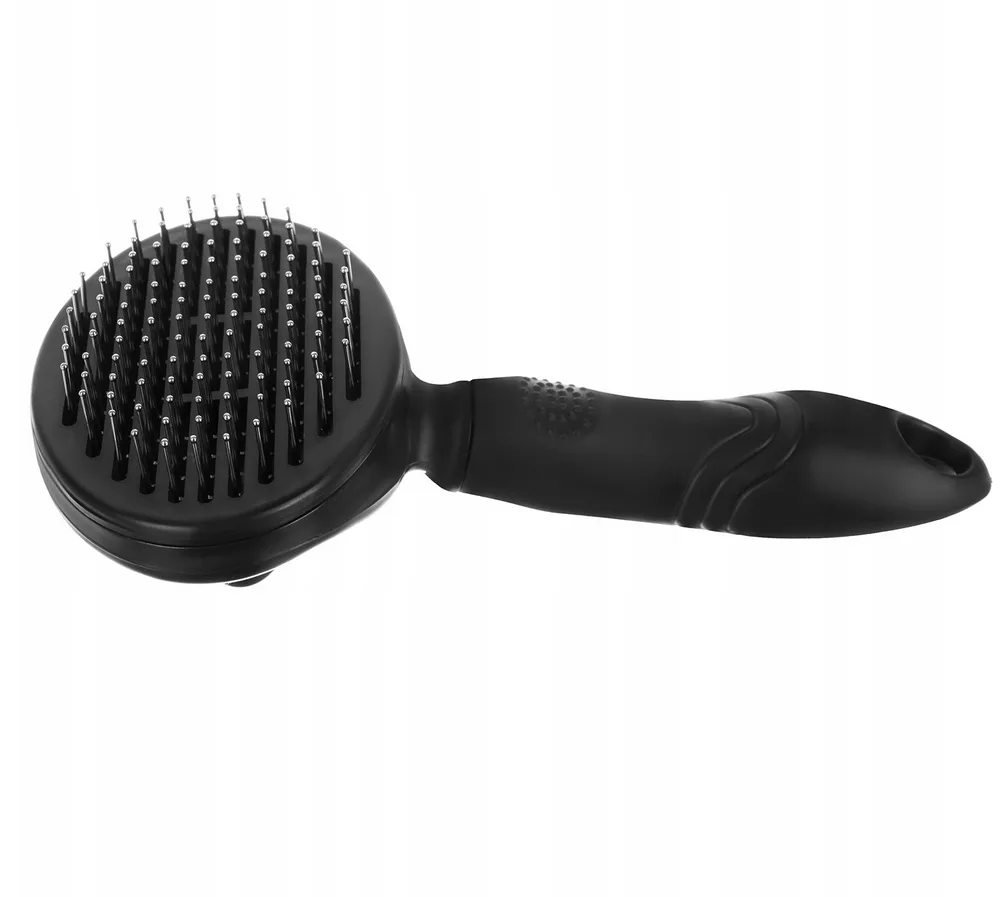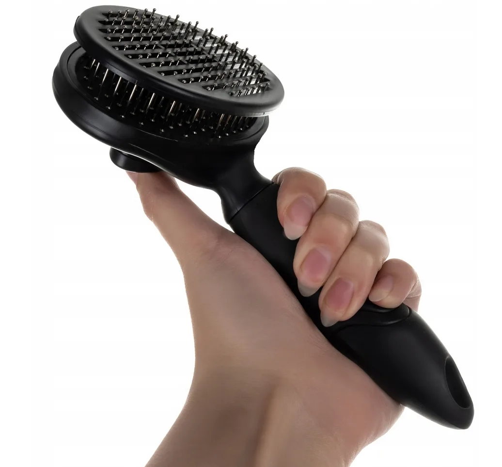 Szczotka do sierści wyposażona jest w przycisk szybkiego czyszczenia.