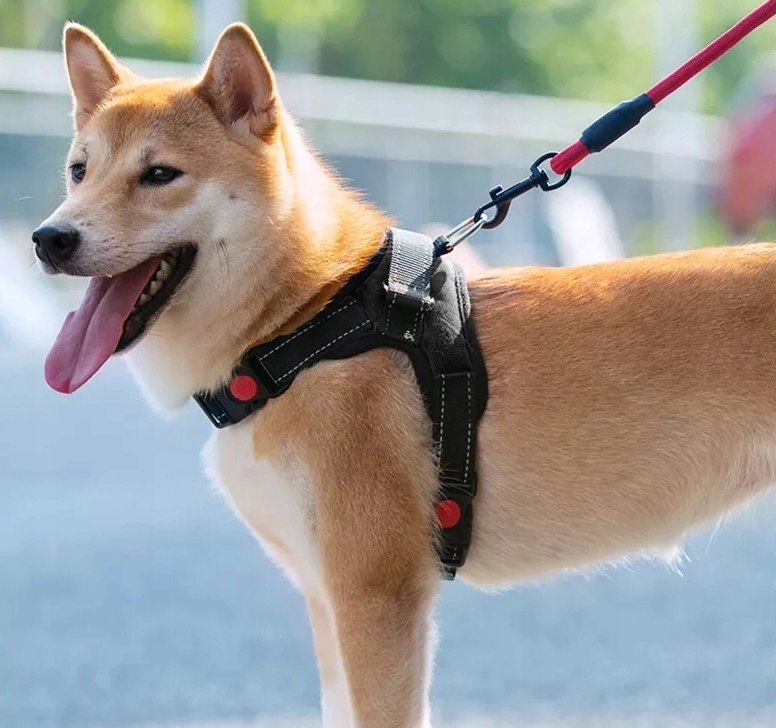 Oprócz tego pod uchwytem znajduje się zaczep na smycz, dlatego nie ma również potrzeby zakładania zwierzęciu obroży żeby prowadzić go na smyczy.