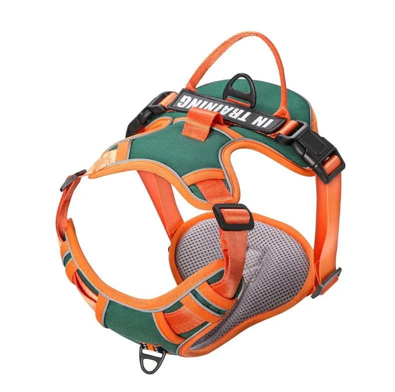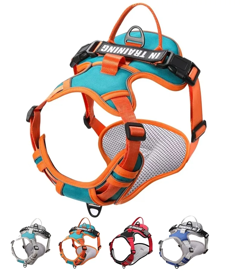 Mocne szelki bezuciskowe z dodatkowym uchwytem wykonane z wysokiej jakości oraz trwałych materiałów: PP, tkanina Oxford, metalowa klamra dzięki którym produkt jest niezwykle solidny oraz wytrzymały.