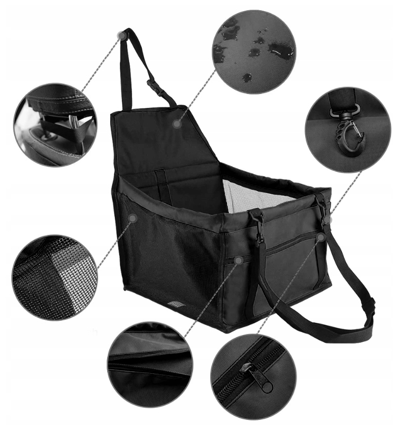Wygodny i bezpieczny fotelik samochodowy dla psa lub kota.