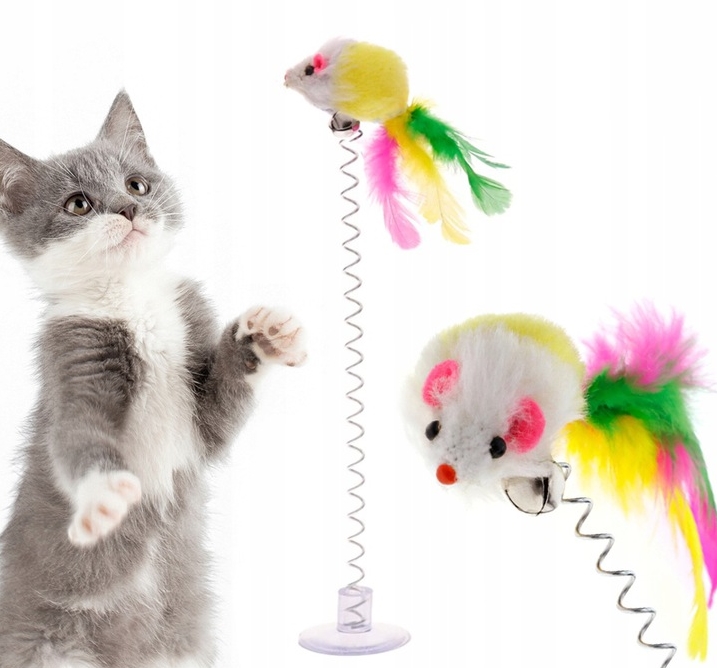 Zabawka dla kota myszka na przyssawce dzwonek