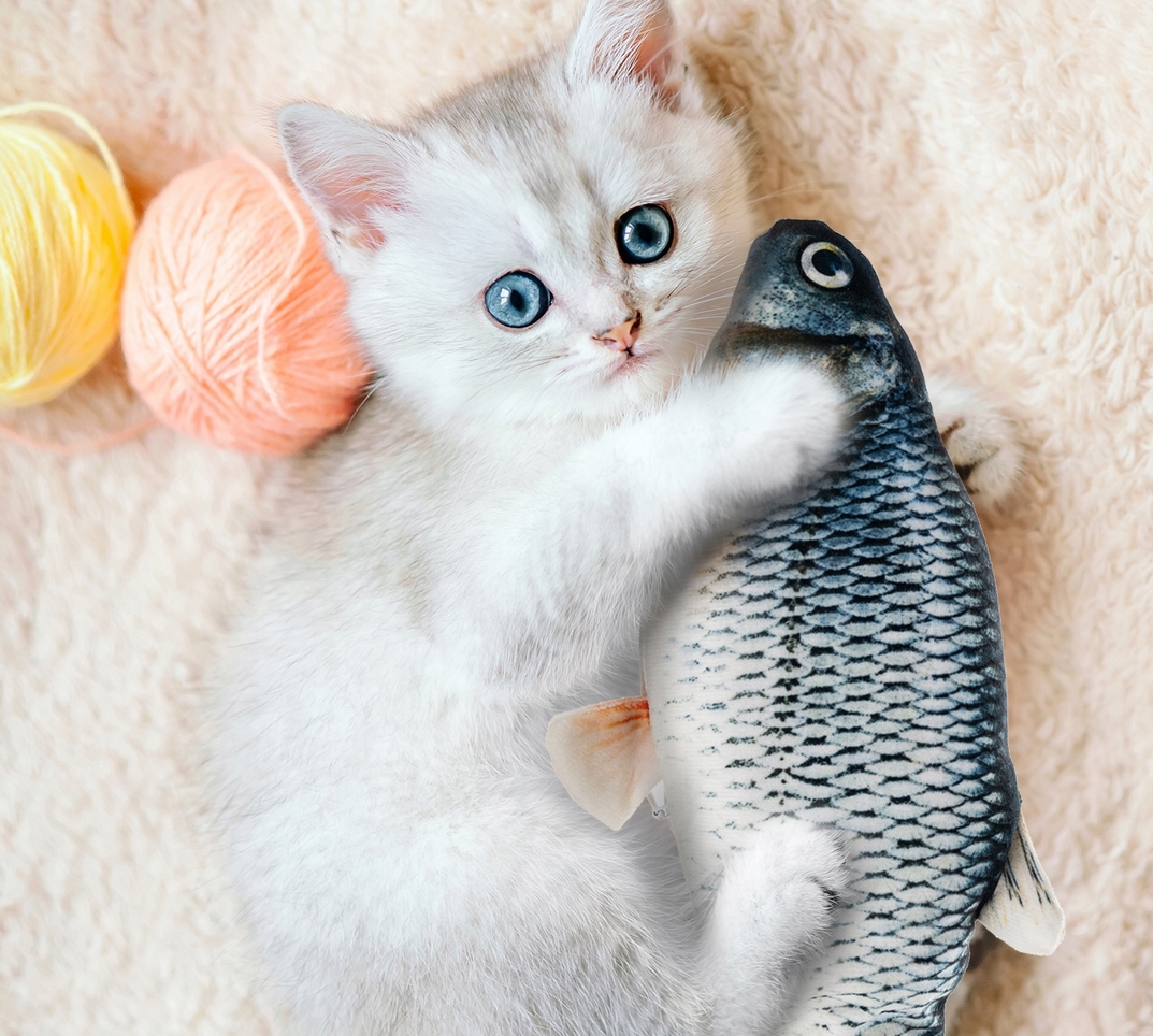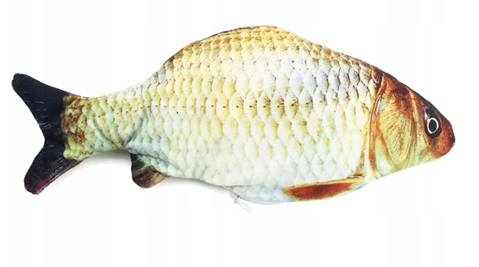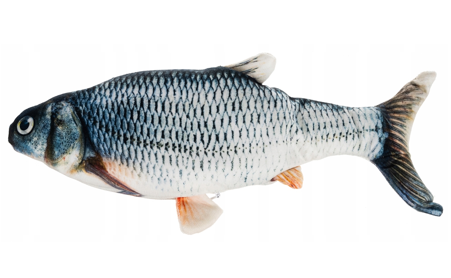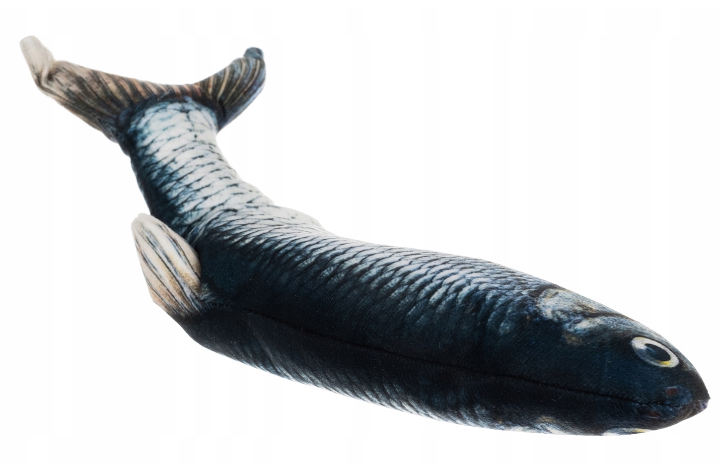 Zabawka to miękki pluszak w kształcie ryby wykonanej w 3D, ma bardzo realny wygląd oraz wymiarami przypomina prawdziwą rybkę.