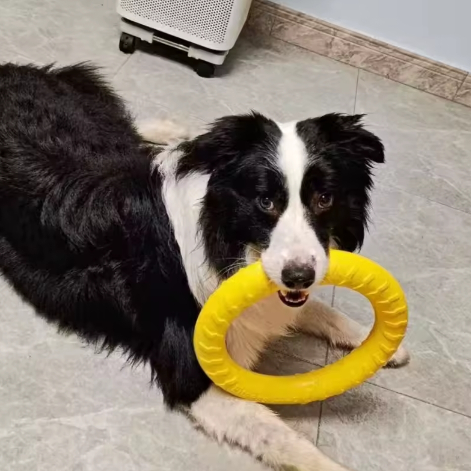 Unikalny materiał sprawia, że ring unosi się na wodzie i jest dobrze widoczny zarówno dla psa, jak i właściciela.