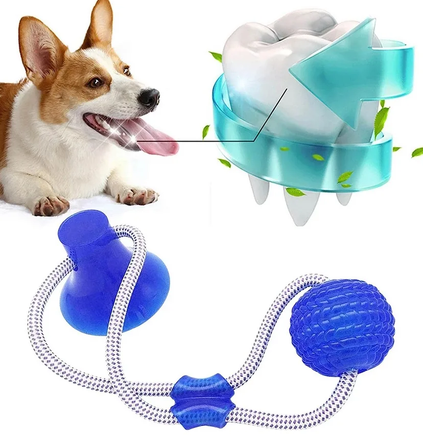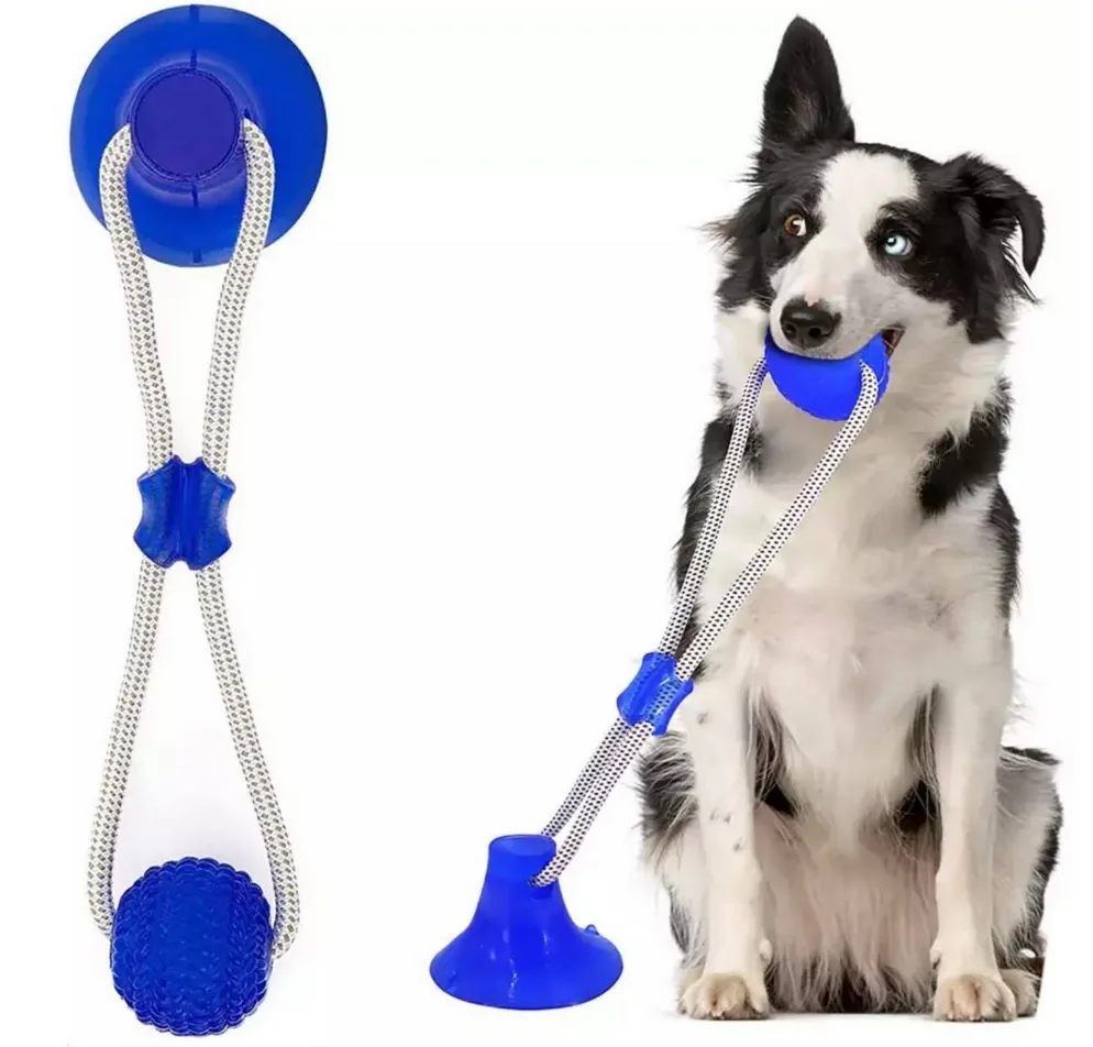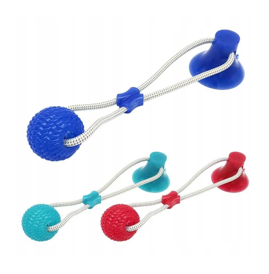 Posiada przyssawkę, dzięki której piłkę można zamocować do ściany lub płytek i pies może zająć się zabawą przez długi czas.