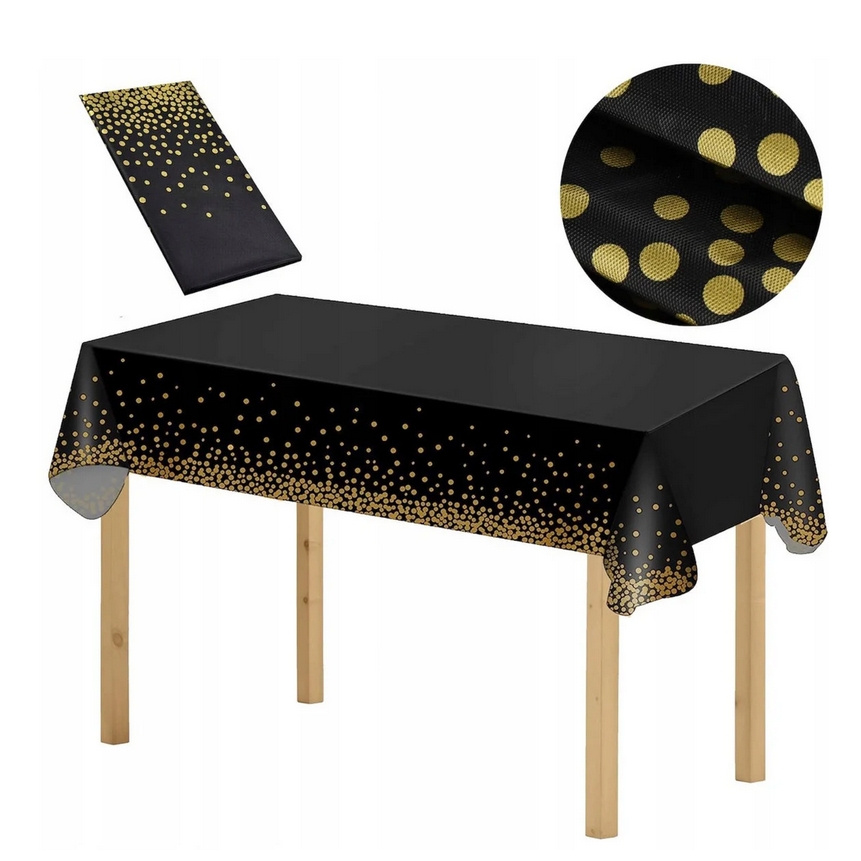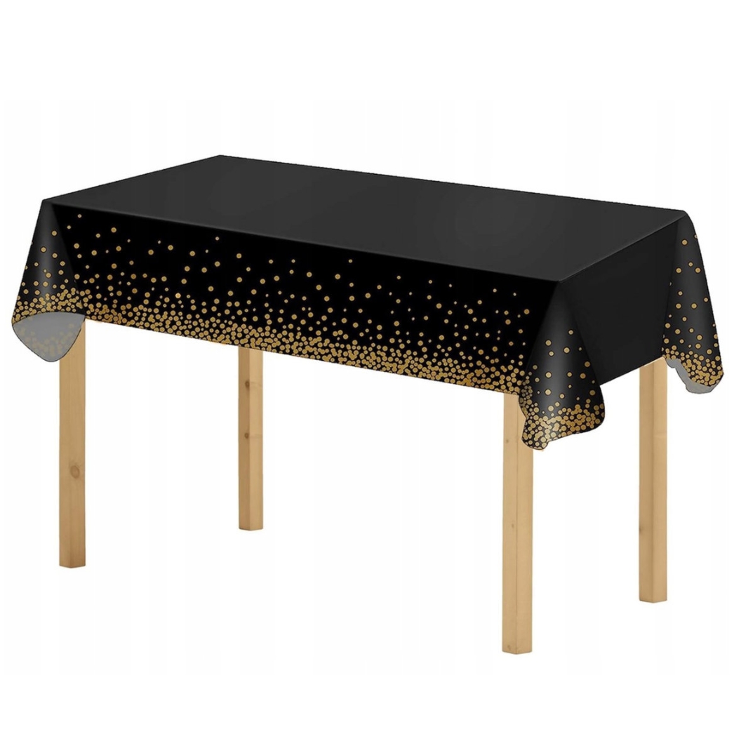 Obrus foliowy czarny złoty konfetti cerata na stół ozdoba dekoracja xl 274x137cm
