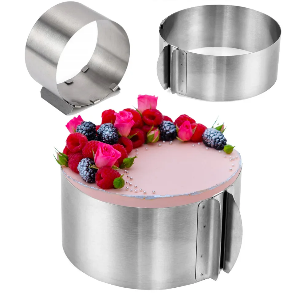 Opaska do tortu ze stali nierdzewnej, która jest bardzo pomocna w przygotowywaniu wypieków z dodatkami – bita śmietana czy chociażby galaretka.