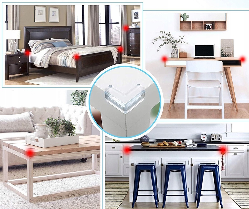 Zabezpieczenia sprawdzają się zarówno przed uszkodzeniem kantów mebli, oraz bolesnym uderzeniem przez dzieci, seniorów czy zwierzęta.