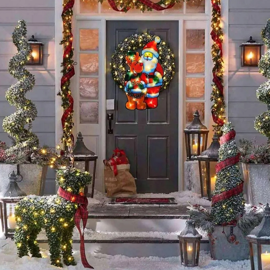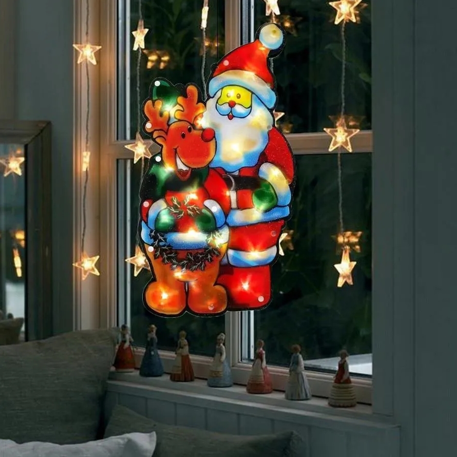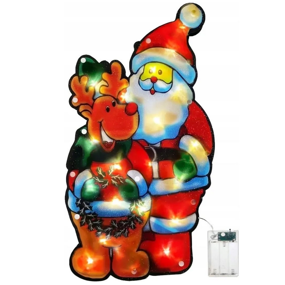Ozdoba led folia mikołaj renifer lampki biały ciepły na baterie 44cm