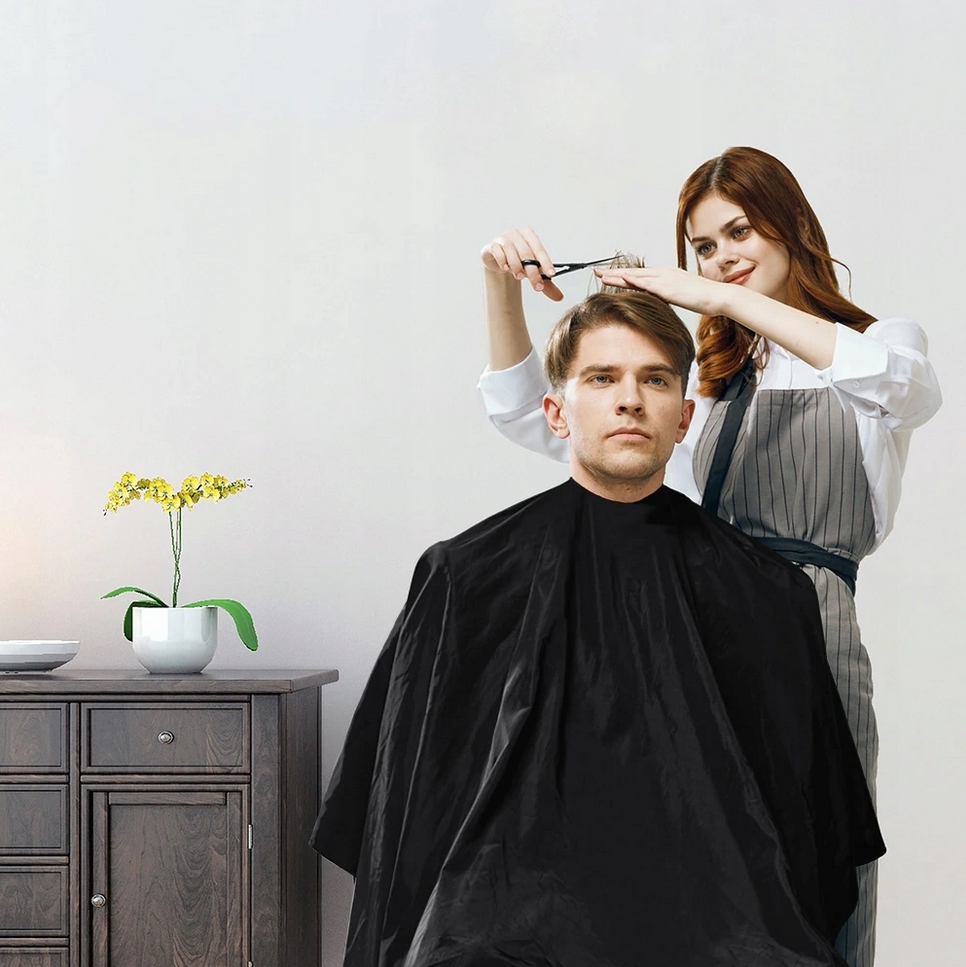 Stylowa peleryna fryzjerska to obowiązkowy element każdego salonu fryzjerskiego, ale równie dobrze sprawdzi się do użytku domowego.