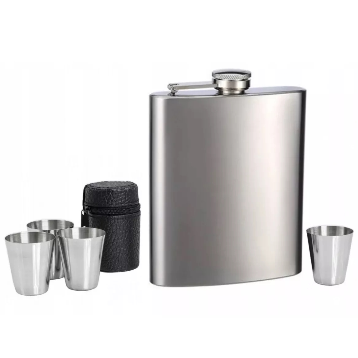 Piersiówka metalowa 240ml+kieliszki turystyczne 4szt 30ml zestaw