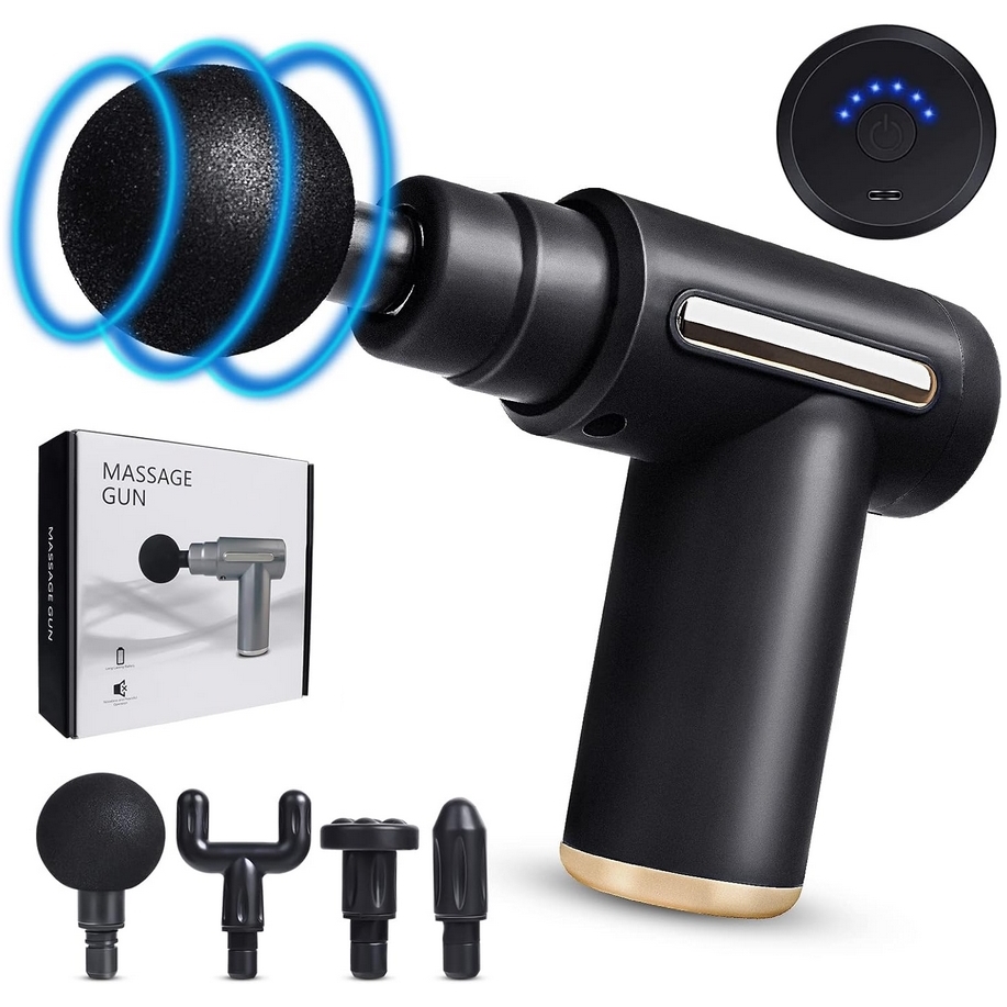 Pistolet do masażu z 4 głowicami do masażu i prędkością do 3500 obr./min, akumulator 1200 mAh.