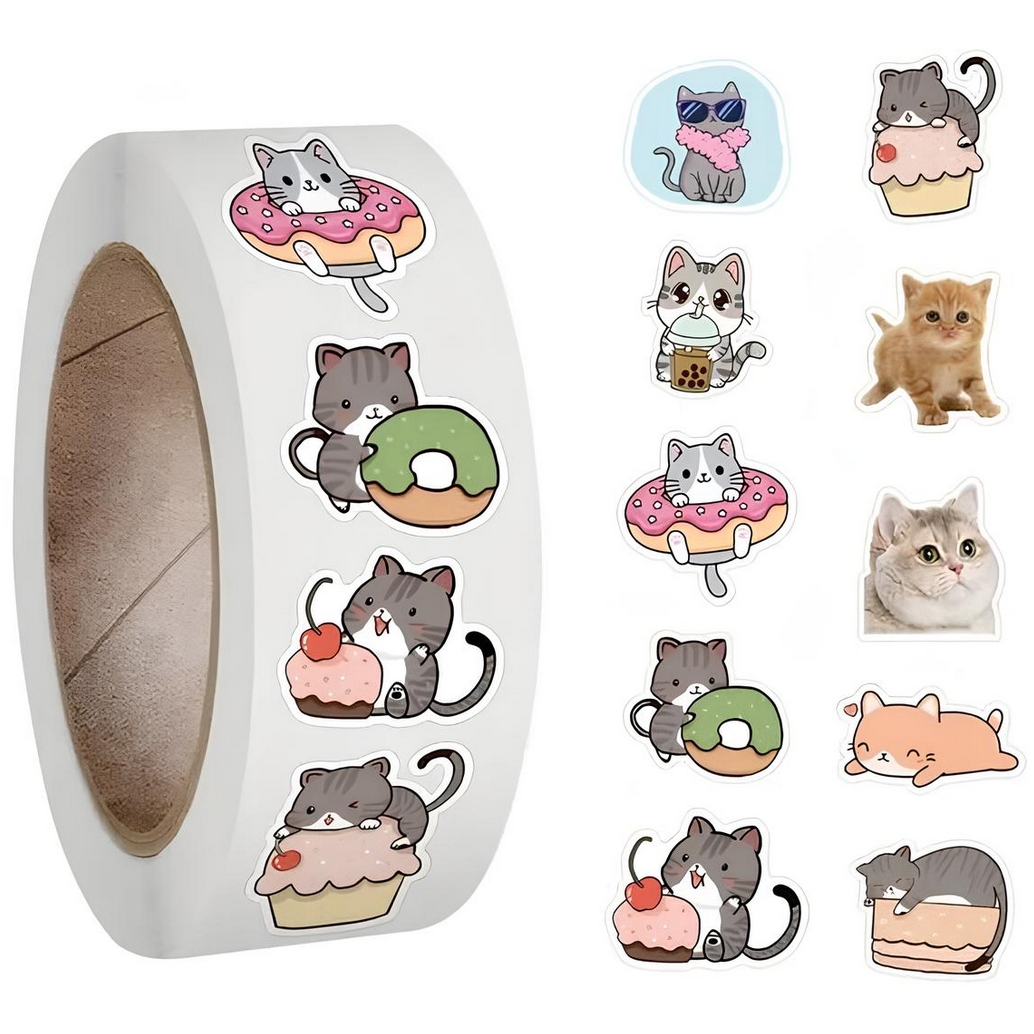 PLAYJOY Naklejki motywacyjne dla dzieci rolka samoprzylepne z kotkami kotami koty kotki 500szt