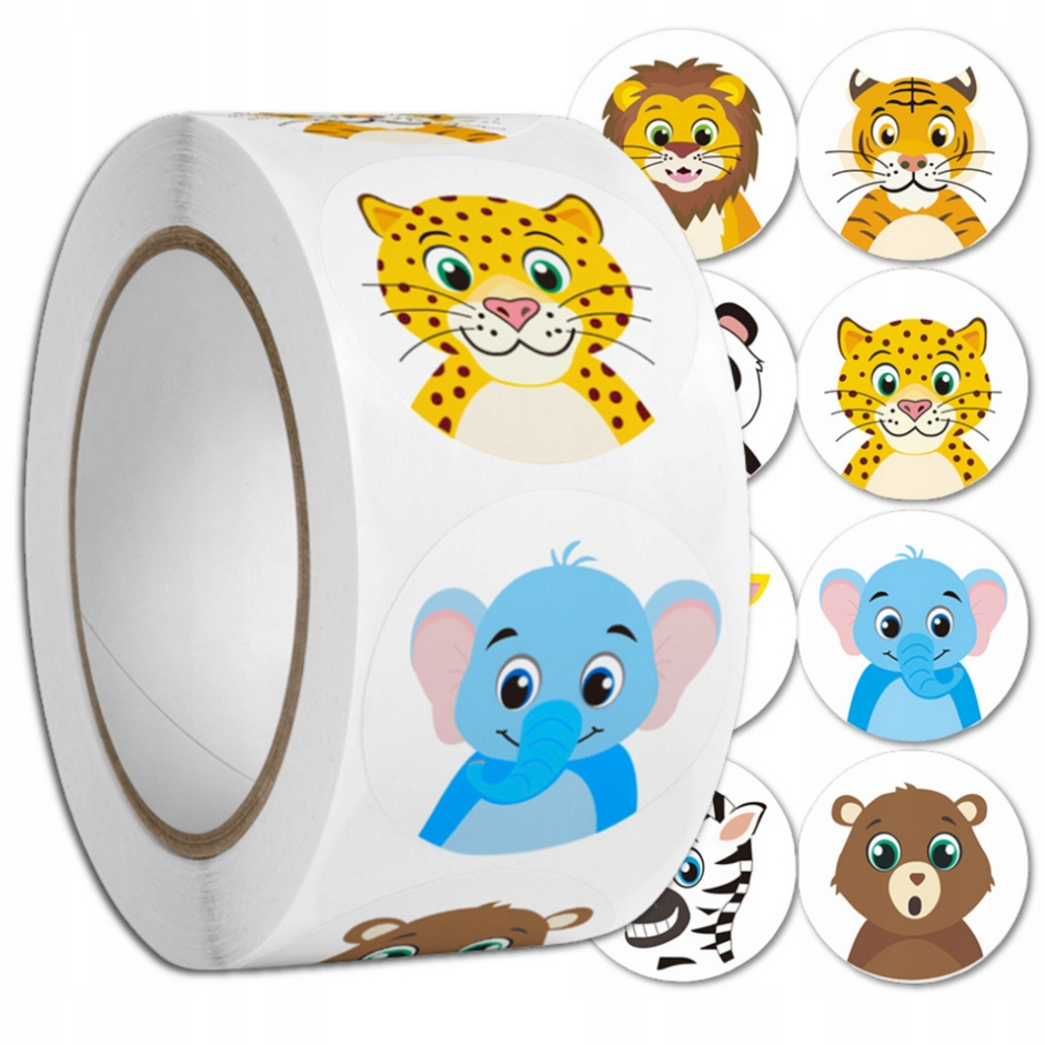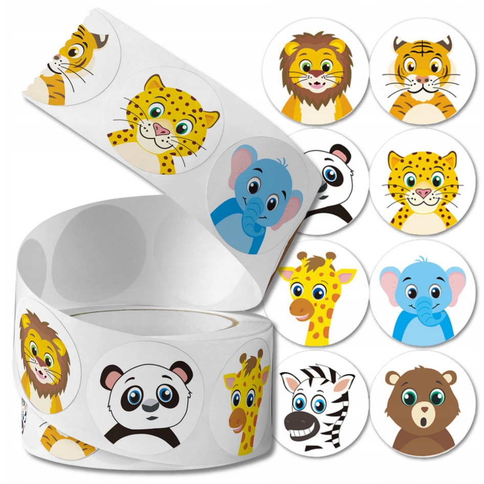 PLAYJOY Naklejki motywacyjne dla dzieci rolka samoprzylepne ze zwierzętami zwierzęta zwierzętami zwierzaki zwierzakami 500szt