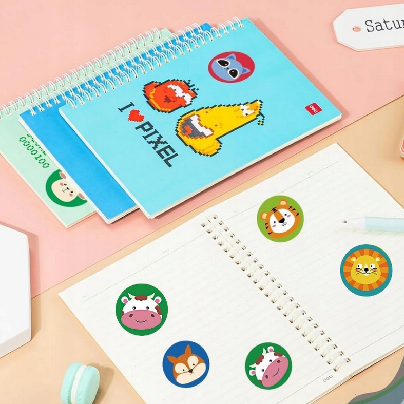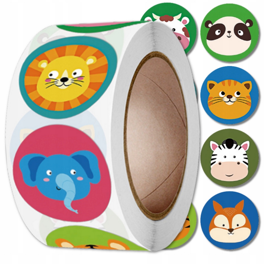 PLAYJOY Naklejki motywacyjne dla dzieci rolka samoprzylepne ze zwierzętami zwierzęta zwierzaki zwierzakami 500szt