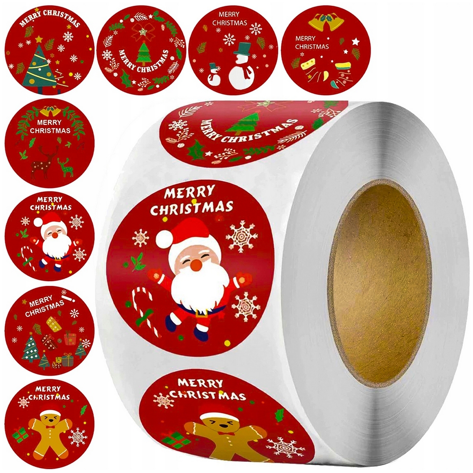 Rolka samoprzylepnych naklejek posiada aż 8 różnych wzorów świątecznych.