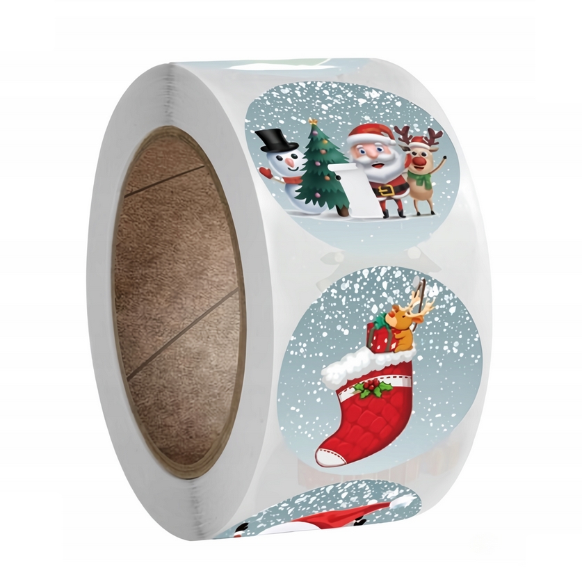 Rolka samoprzylepnych naklejek posiada aż 8 różnych wzorów świątecznych.