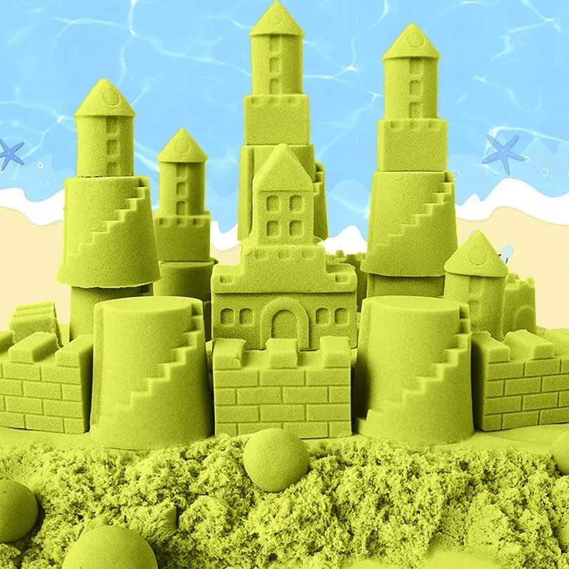 Magiczny piasek można z łatwością formować tworząc budowle, postacie, itp. bez użycia wody, a po zakończonej zabawie piasek bez problemu wraca do oryginalnej formy.