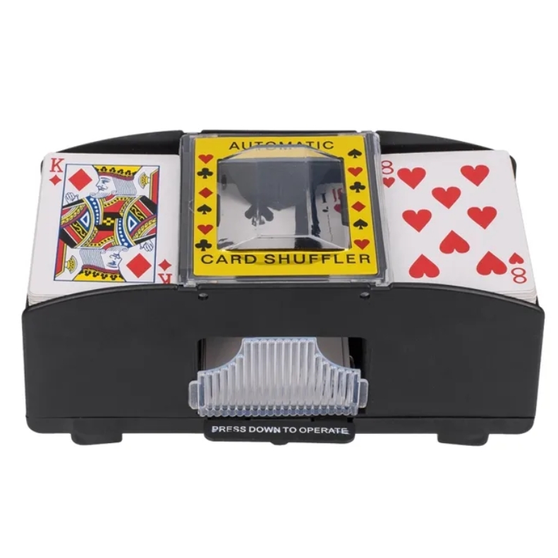Automatyczna tasowarka do kart to praktyczne i wygodne urządzenie przeznaczone do szybkiego oraz równomiernego tasowania kart.