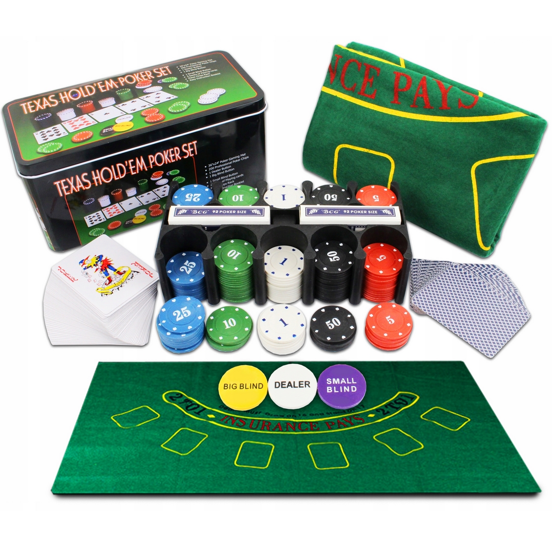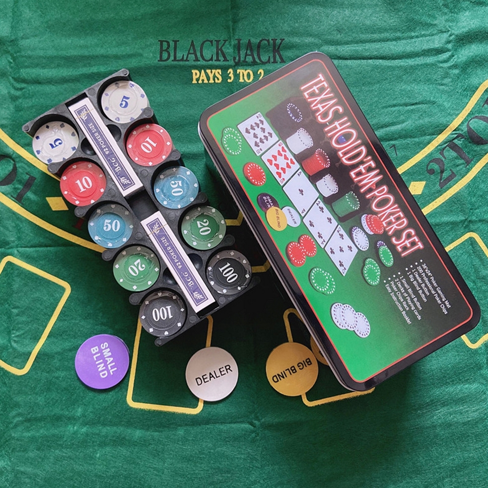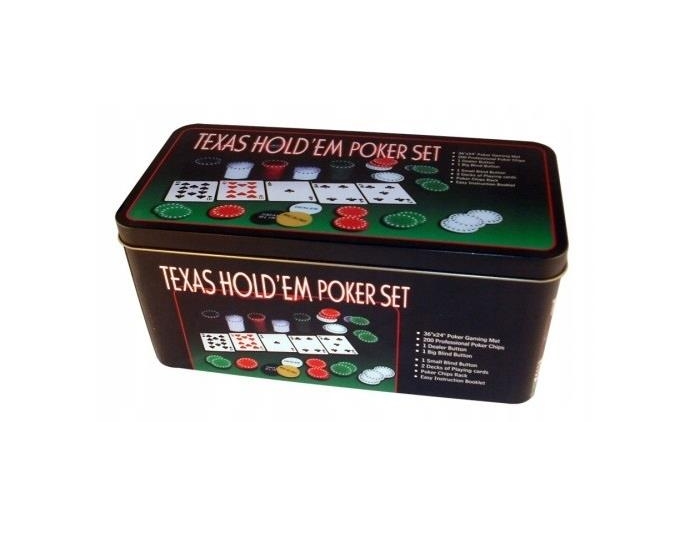 PLAYJOY Zestaw do pokera box metalowe opakowanie żetony mata karty 200szt