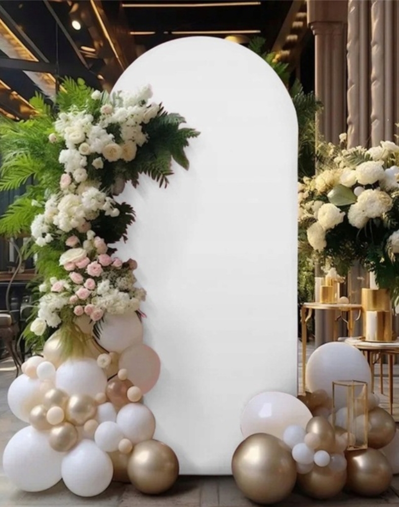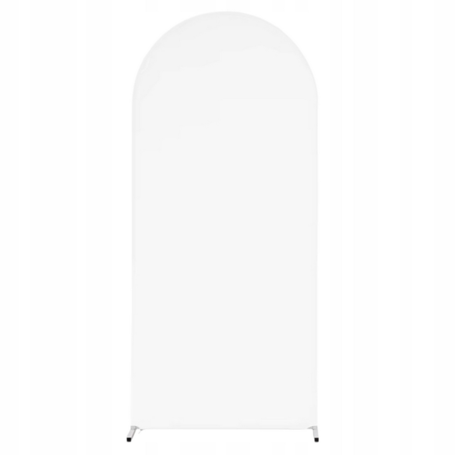 Biały pokrowiec na stojak w kształcie łuku o wymiarach 200x100cm to praktyczny element dekoracyjny, który pozwala stworzyć efektowne tło na różnego rodzaju uroczystości.