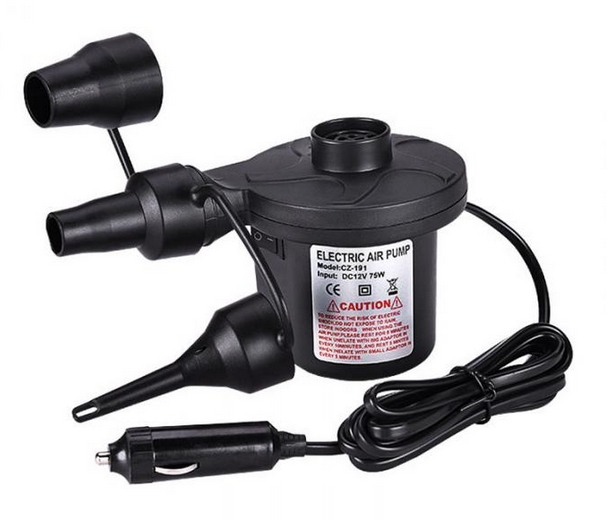 Pompka elektryczna zasilana z gniazdka zapalniczki samochodowej lub z gniazdka sieciowego – idealna do pompowania materacy, piłek i innych.