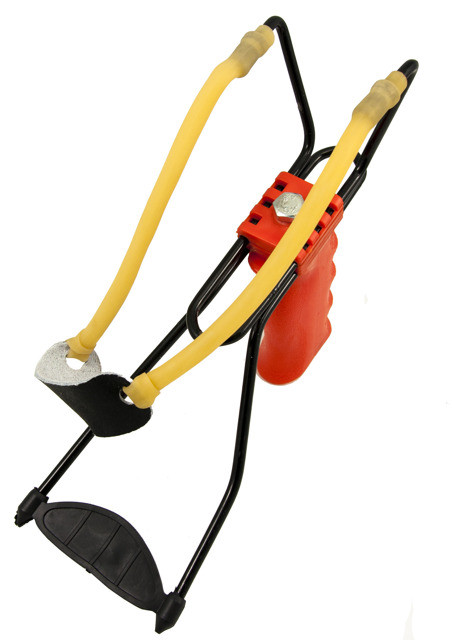 Posiada mocne i trwałe gumy kauczukowe oraz koszyk, które pozwalają wystrzelić pocisk na odległość nawet do 60m.